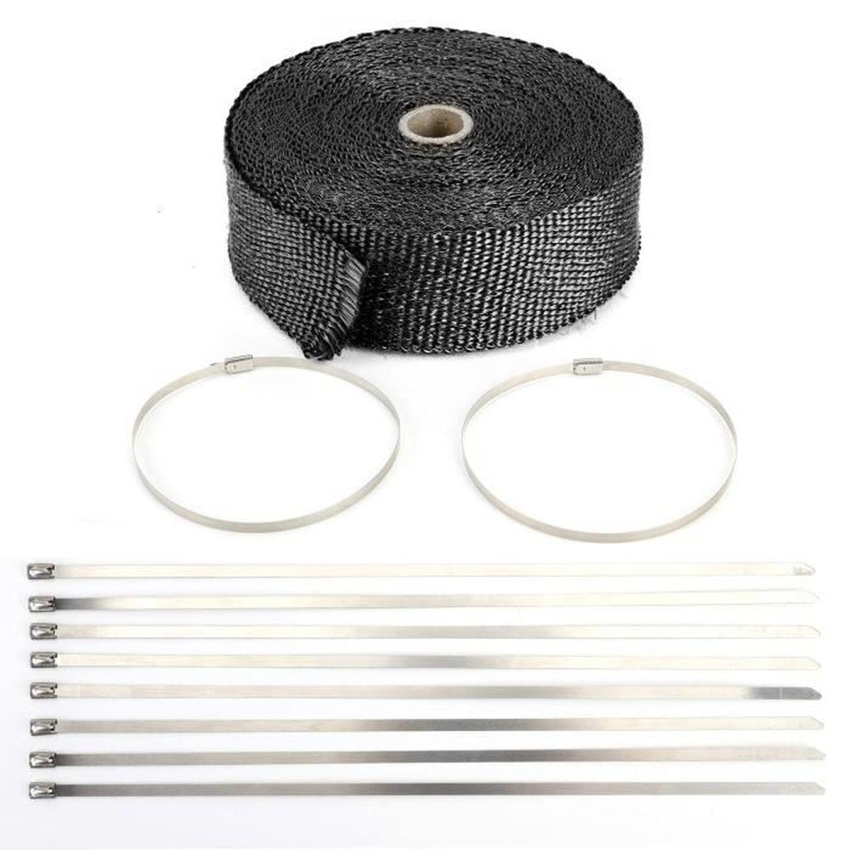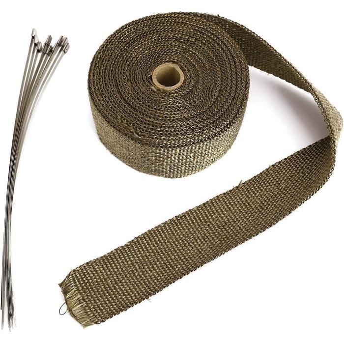 Bandelette Thermique Echappement VINGO 2x 10M Bande Isolant Thermique Collecteur Echappement Noir Avec 20 Fixation Des Serre Cables 85932583 Collier Serrage Les enveloppes thermiques de collecteur d'échappement de moto servent à protéger les composants proches du moteur, à réduire les températures élevées dues à la chaleur du système d'échappement et à améliorer les performances du moteur. MATÉRIAU DE QUALITÉ : Fabriqué en fibre ignifuge, le ruban adhésif résiste aux températures élevées jusqu'à 1000°C et aux pics de chaleur momentanés jusqu'à 1500°C. Ruban isolant thermique d'échappement fibre céramique (50mm x 15m, noir) - V/A MotorSport Bande thermique collecteur échappement DEI titanium largeur 25mm - AB... Le ruban se fixe facilement avec les attaches de câble fournies, assurant un maintien ferme et sécurisé. Ces précautions garantissent une application efficace et sûre du revêtement thermique. Tirez fermement sur le bandage pour assurer un bon ajustement et utilisez des attaches à vis de plombier pour une fixation sûre et durable. UTILISATION UNIVERSELLE : Adapté à toute pièce interne du moteur, ce ruban isolant a une longueur de 15 mètres, une largeur de 5 cm et une épaisseur de 1,5 mm. Il offre une résistance à la corrosion, une isolation thermique et une absorption acoustique, garantissant durabilité et fiabilité. Protection extrêmement durable, blindage thermique, constituée de laine de roche. Cette bande a une résistance à la chaleur indirecte d'environ 1000 ° C et à la chaleur du moment de 1500 ° C AVERTISSEMENT: portez des gants pour vous protéger des petites fibres qui provoquent des démangeaisons pendant quelques heures; tirez bien le bandage pendant l'installation; utilisez les pinces à vis des plombiers.