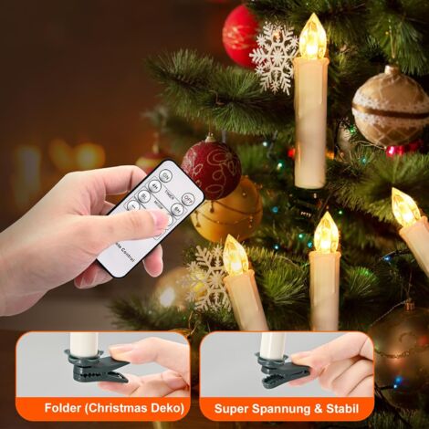 Bougie Sapin LAOA Bougies De Sapin De Noël Lot De 12, Bougies LED Flottantes Sans Flamme A Piles Et Telecommande Avec Pince Bougies Lumieres Darbre De Noel Decoration A La Maison Pour Fete Blanc Chaud 85185073 Led A Pile Avec Telecommande Lot de 22 bougies de sapin de Noël avec clip vacillant - LED sans flamme - Bougies de fenêtre avec minuteur - Bougies de Noël pour la maison, le jardin, les fêtes de mariage - Décoration candélabre Conçues pour les arbres de Noël, ces bougies à piles de 20,3 cm créent une lueur chaleureuse et accueillante, améliorant votre décoration festive tout en assurant la sécurité. Pour créer une ambiance chaleureuse et festive lors des fêtes de fin d'année, optez pour des bougies LED spécialement conçues pour les sapins de Noël. Ces bougies sans flamme offrent un éclairage doux et scintillant, imitant parfaitement l'effet des vraies bougies impressionnant rustique Orange bougie flamme isolé avec vacillant... Télécommande pratique : avec la télécommande incluse, vous pouvez contrôler vos bougies sans effort. 6 Pièce Télécommande Vacillant sans Flamme Conique Bougies LED Lumière Que ce soit à l'intérieur ou à l'extérieur, ils créent un superbe impact visuel qui améliore l'esprit des vacances et ravira vos invités. Bougies de sapin de Noël, ajoutant une touche d'élégance : les bougies de sapin de Noël sont équipées de lignes de pêche (à peine visibles), pré-attachées à ces bougies LED prêtes à être accrochées. Bougies d'arbre de Noël, créez une ambiance chaleureuse : ces bougies scintillantes pour sapin de Noël sont fabriquées en matériau ABS. Lot de 30 bougies LED Blanc Chaud pour sapin. Bougies élégantes pour sapin de Noël : illuminez votre saison des fêtes avec nos belles bougies pour sapin de Noël.
