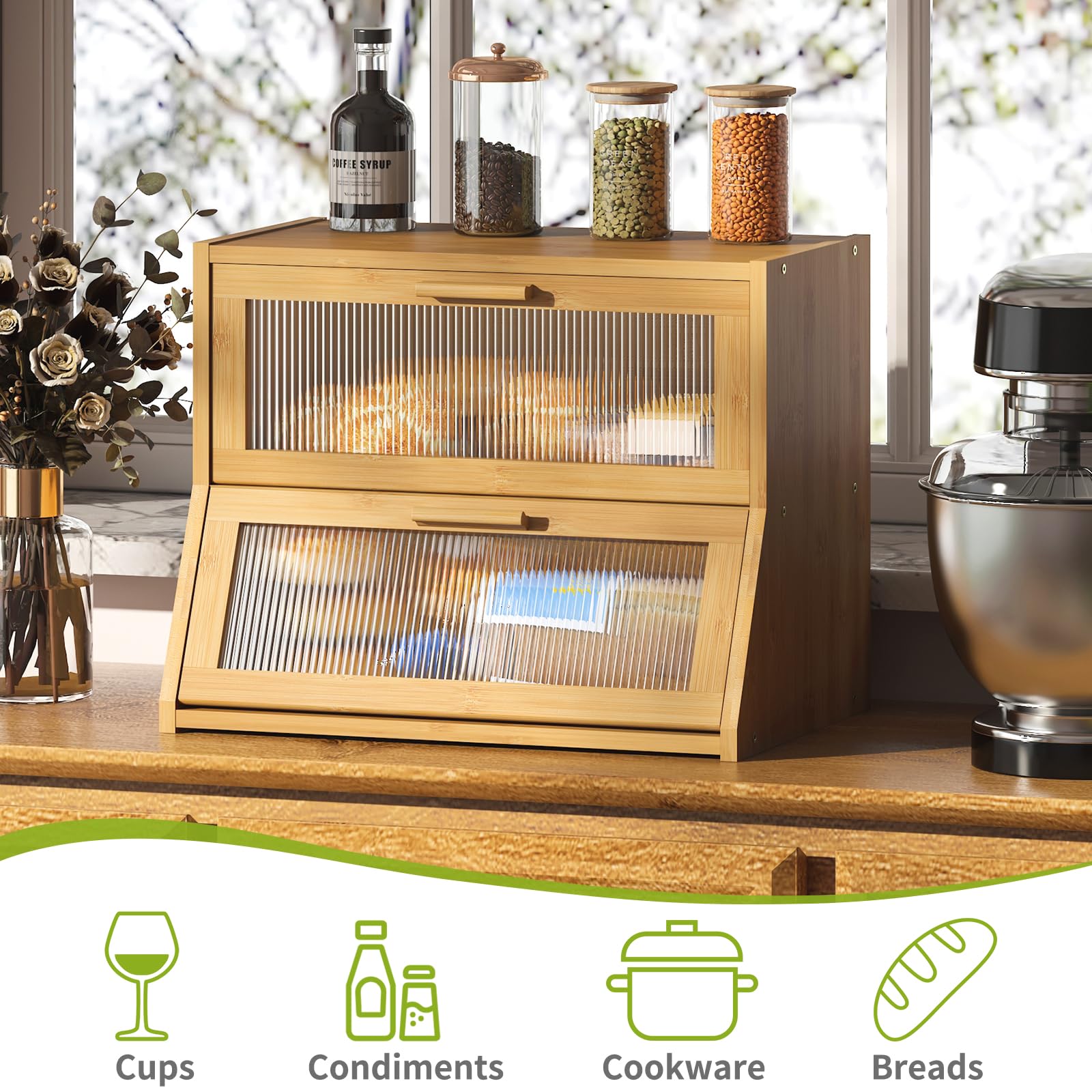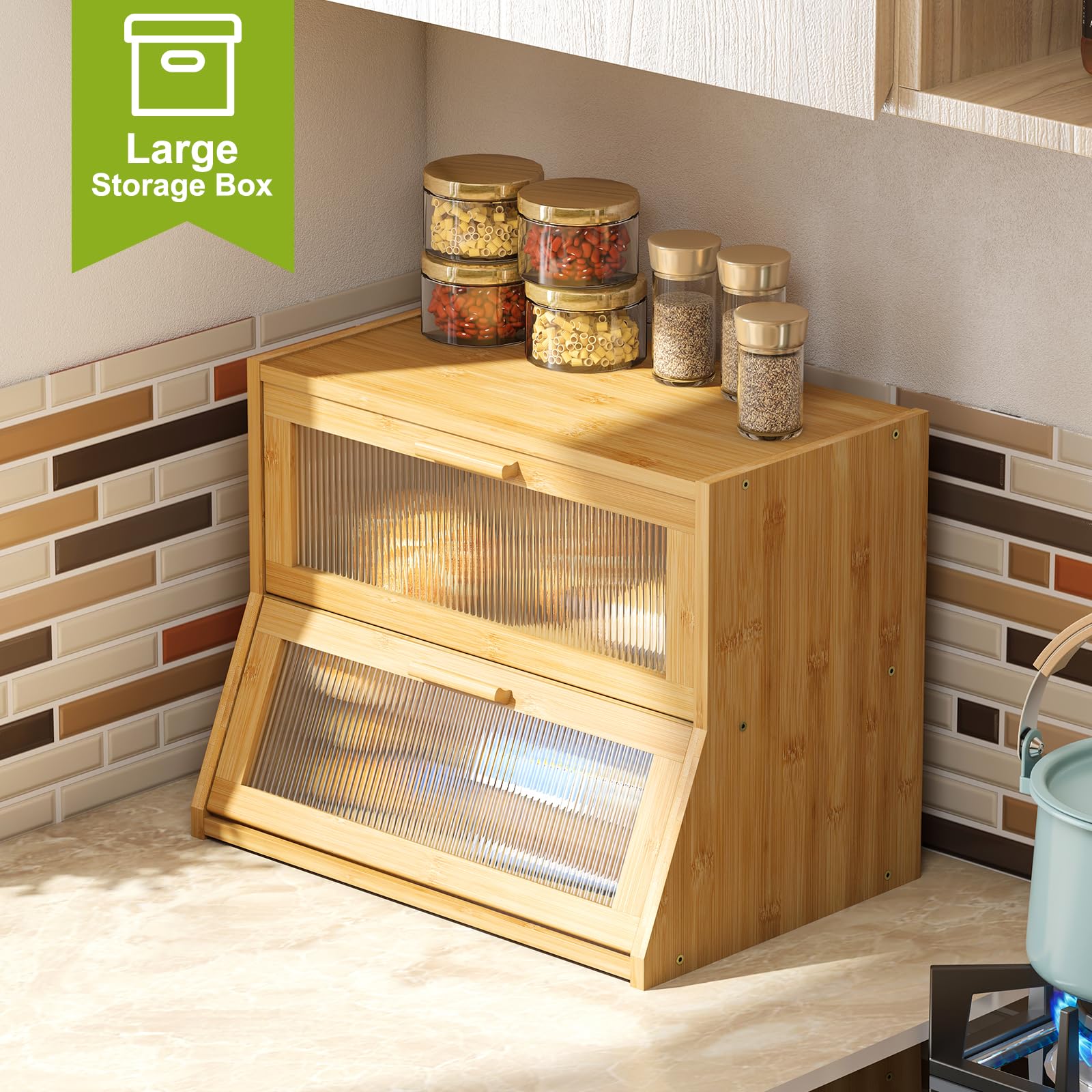 Boîte à pain de ferme pour comptoir de cuisine, récipient à pain avec fenêtre transparente, boîte à pain double couche en bois de bambou extra grande capacité pour cuisine Grande capacité pour contenir deux pains ainsi que des petits pains, des muffins et d'autres produits de boulangerie. Il peut également contenir des fruits, des épices, des couverts et d'autres ustensiles de cuisine. Convenant aux cuisines et aux salles à manger, la porte en acrylique facilite le rangement des aliments et garde vos articles propres et frais Caractéristiques Organiseur de cuisine pratique : convient pour les cuisines et les salles à manger, la porte en acrylique permet de voir facilement le stockage des aliments et de garder vos articles physiques propres et frais Acheter Boîte à Pain En Bambou Avec Plateau Roulant, Grande Boîte De Rangement Du Pain, Porte-pain Pour Comptoir De Cuisine, Récipient à Pain 1 Pièce Patins antidérapants : les patins antidérapants empêchent le produit de glisser facilement, tout en évitant les rayures sur le plan de travail La boîte à pain à double compartiment est super capacité, peut contenir jusqu'à 2 pains ainsi que des petits pains, des muffins et d'autres pâtisseries. Il peut également stocker des ustensiles de cuisine tels que des fruits, des condiments, des plats, etc. Peut être utilisé pour le stockage des aliments, boîte de rangement de cuisine... Boître à douleur en bambou à double couche pour Cote dIvoire Gain de place : la poignée de porte de la boîte à pain est lisse et sans bavure, le verrou magnétique empêche la porte d'être bien fermée, et le comptoir supérieur permet d'économiser de l'espace Il peut également stocker des fruits, des épices, des couverts et d'autres ustensiles de cuisine