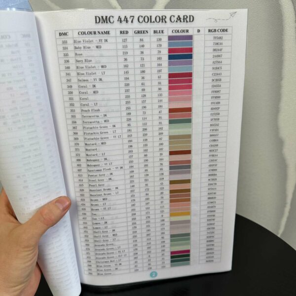 Cette carte de couleur imprimée de 12 pages comprend toutes les nuances de ces fils DMC de qualité supérieure : fil à 6 brins, 115 cotons perlés de taille 3 et 5, 116 fils de coton perlé de tailles 5, 8 et 12, 417 variations de couleur, 415 variations de coton perlé, effets de lumière, coton métallisé et fil satiné. Des instructions détaillées de lavage et d'entretien pour chaque fil sont fournies (français non garanti) Dimensions du produit (L x l x H) : 0,6 x 22 x 30 cm Cette carte de coloris imprimés de 12 pages comprend les descriptions des produits,les recommandations des utilisations, les instructions de lavage pour chacun des fils DMC dans les collections de fils suivantes; Fil à broder de six brins, échevettes et balles de fil de coton perlé, fil à broder Colour Variations, fil de coton perlé variations, fil à broder effet lumière, fil à broder... DC - Carte de nuances de fil à broder en coton ouliné & Perlé - Carte... Colors By Number DMC - Nuancier Imprimé Broderie - Carte De Couleurs Imprimée, Accessoire Indispensable Colors By Family alliage faire glisser le même nuancier fils gütermann classique