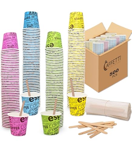 Lot de 1000 gobelets jetables en carton de 75 ml de R., F., distribution Les gobelets en papier de 75 ml sont la solution idéale pour savourer pleinement le goût du café expresso, du ginseng et de la crème café à l'intérieur des structures telles que les bars, les restaurants et les hôtels. Les gobelets 75 ml de R., F. [Fabriqué en Italie] Conçus et fabriqués en Italie à 100 %, nos verres à café sont hygiéniques, résistants et adaptés à tout environnement professionnel ou domestique Les gobelets en papier fantaisie AMALFI de 75 ml sont la solution idéale pour savourer pleinement le goût du café expresso, du ginseng et de la crème café à l... Gobelets Jetables Cafe Marketcaffe Lot De 1000 Gobelets Jetables En Papier De 180 Ml Bureau En Verre bioexxe Kit cafe, palettes et sucre - 100 Gobelets à Café en Papier 75 ml 100 palettes à Café