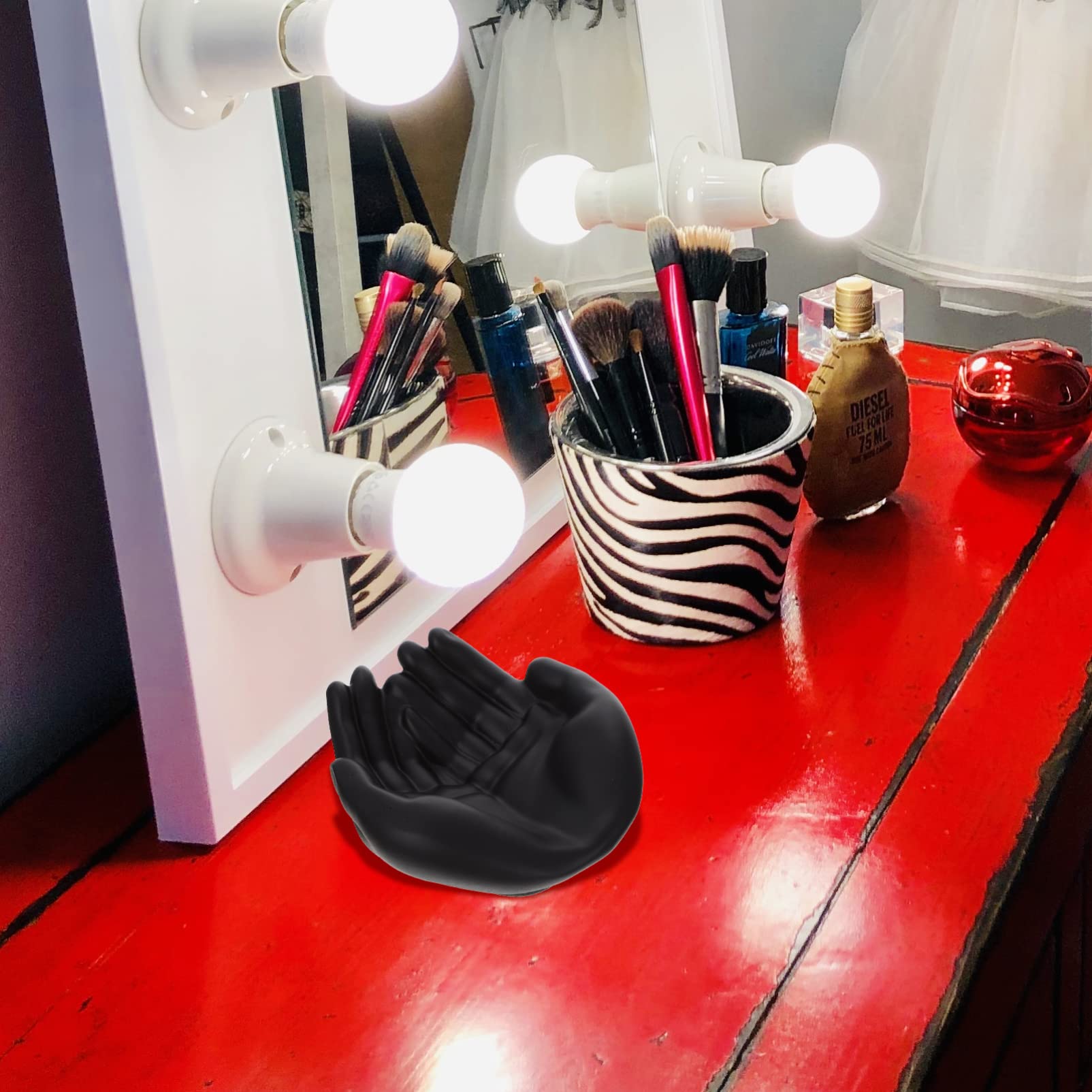 Ce présentoir à bijoux de style gothique dispose d'une structure frappante en forme de main, avec le détail le plus accrocheur étant le doigt central, ressemblant au geste d'un majeur étendu. Le bout des doigts est délicatement recouvert d'or, offrant une plate-forme d'affichage accrocheuse pour vos bagues, boucles d'oreilles, colliers, montres et bracelets. Bracelet bague chaine de main en or | Chaîne Bijoux Porte Bijoux Collection Penobon Porte Bijoux, 2 En 1 Support Arbre Bijoux & Plateau à Bijoux En Porte Bijou Maison Du Monde Présentoir à bijoux de style gothique Dimensions compactes : mesurant 9,1 cm de longueur, 9,1 cm de largeur, 20,3 cm de hauteur, et ne pesant que 0,3 kg, il s'adapte parfaitement à votre coiffeuse, coiffeuse, bureau ou tout endroit nécessitant un accent accrocheur. Matériaux écologiques et résistants : Fabriquée en résine végétale solide, cette main distinguée est non seulement respectueuse de l'environnement, mais aussi robuste et durable. C'est un excellent choix de cadeau, que ce soit pour vous-même ou vos proches, montrez votre goût et votre attention. Il prend un minimum de place tout en ajoutant une touche artistique unique à votre environnement. Il peut accueillir différents types de bijoux, y compris des bagues, des boucles d'oreilles, des colliers, des montres et des bracelets, vous aidant à garder vos bijoux organisés et bien rangés. Dimensions du produit : 16,8 x 9,9 x 7,1 cm. ❥ Le cadre en céramique est parfait pour présenter le cadre en céramique Bouddha mauvais œil – le moyen idéal de... Bijoux pour femmes : les nouvelles collections à ne pas manquer... Exposez vos plus beaux bijoux et mettez-les en lumière. Design polyvalent : ce présentoir à bijoux en forme de main n'est pas seulement visuellement attrayant, il est également très pratique.