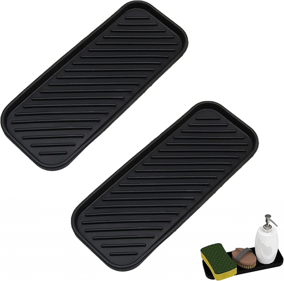 【Matériel de haute qualité】 Ce organisateur d'évier de est fabriqué en silicone de haute qualité, doux et flexible, durable, sûr et inodore, sans BPA, facile à entretenir et à nettoyer, lavable au lave-vaisselle. 【Une large gamme d'utilisations】 Le support eponge peut être utilisé pour ranger les éponges, les brosses, le savon, le savon à main, les brosses à vaisselle, les cuillères, les spatules, les couteaux, les ustensiles de cuisine, les petites plantes en pot, etc. pour une meilleure protection des tables et des comptoirs de cuisine, parfait pour la plupart des plans de travail. Le tapis d'égouttage a un large éventail d'utilisations, parfait pour les éponges, les brosses, les bouteilles de détergent, le savon à main, les couverts près de l'évier, les porte-cuillères sur la cuisinière et bien plus encore QWORK® Lot de 2 plateaux de rangement en silicone 23,5 x 9 cm, porte-savon et éponge pour évier de cuisine et salle de bain – Noir 23,6 x 9,1 cm... Porte Eponge 2 Pièce Plateau En éponge, 23 * 9cm Porte Savon Antidérapant Plateau Support Eponge Organisateur evier peut garder les comptoirs secs et prévenir les moisissures et les odeurs. Plateau à savon de cuisine 1/2/3/4 pièces, organisateur d Les plateau eviersont largement utilisés dans la cuisine, la salle de bain, le comptoir, le bureau et le jardin, etc. 【Quantité et taille】 Le paquet comprend 2 pièces de porte eponge evier, longueur 23cm, largeur 9cm, hauteur 1,5cm, le porte savon cuisine épaissi assure une longue durée de vie et est résistant à la déformation ou à la déchirure, peut être facilement nettoyé en rinçant avec de l'eau, ce qui garantit que vous pouvez l'utiliser pendant une longue période. et répondent à un grand nombre de besoins.