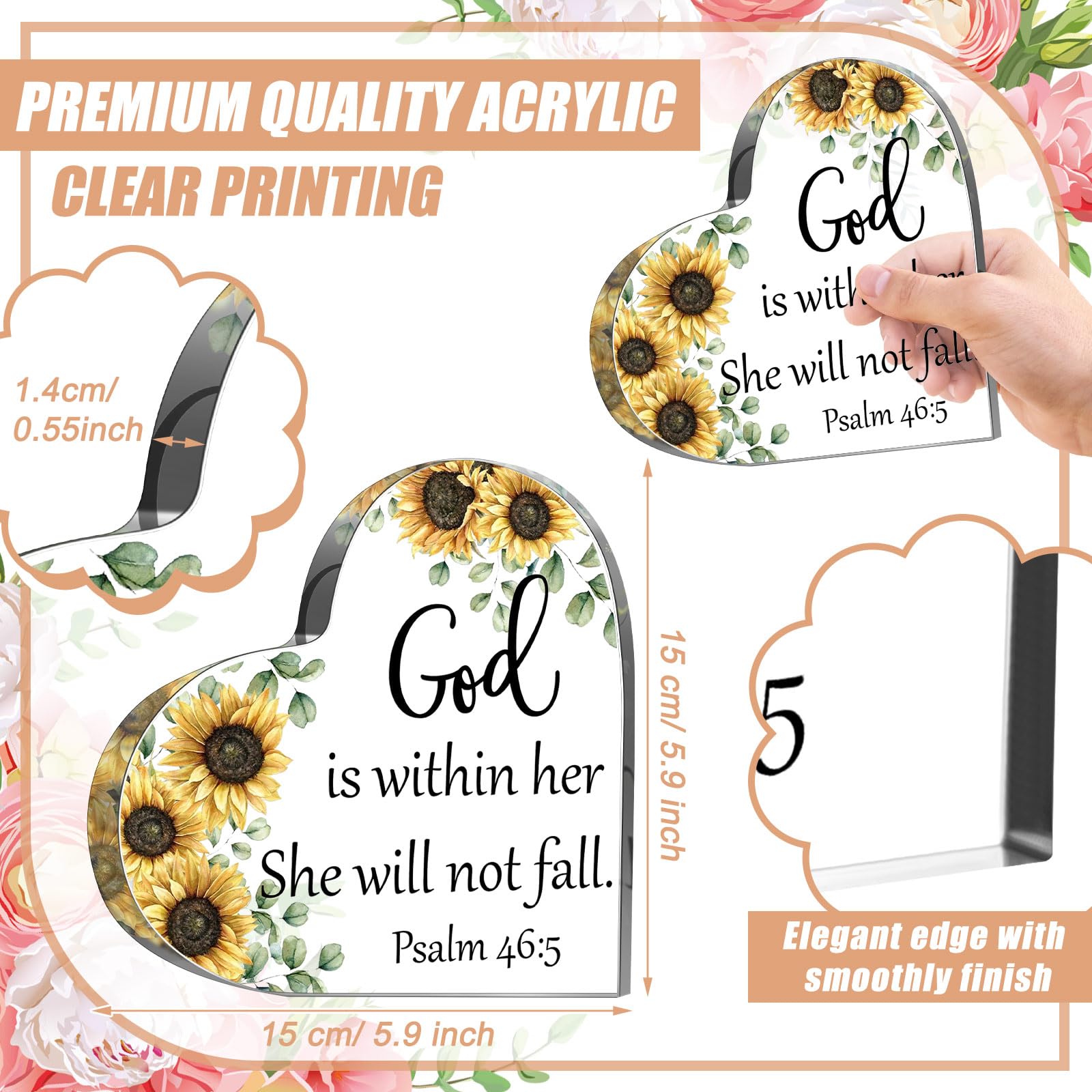 Xipixiao Cadeaux Chrétiens Pour Femmes : Décoration De Bureau En Acrylique En Forme De Cœur Avec Verset De La Bible, 13 X 13 Cm Contenu : 1 cadeau d'appréciation pour enseignant en acrylique. Taille : la taille du cadeau religieux pour femme est d'environ 11 x 10 x 1 cm, convient à la plupart des bureaux et étagères sans prendre trop de place. Mattheu 11:28 verset bblque personnalsé Cadeaux chrétens | Etsy France Plaque acrylique coeur chrétien - cadeau de vers de la Bible, Dieu prend soin de vous, décoration de papillon, cadeau d'encouragement religieux, décoration... Design exquis : le cadeau chrétien pour femme imprimé avec un beau papillon bleu, conçu en forme de cœur, imprimé avec un verset biblique significatif, ce qui rend les gens encouragés, riches en couleurs et en apparence exquise. Cadeaux chrétiens pour femmes, cadeaux inspirants en Large gamme d'utilisations : les cadeaux de versets de la Bible peuvent non seulement être utilisés pour décorer votre maison, bureau, mais peuvent également être offerts à des parents, à la famille ou aux amis pour les anniversaires, les remises de diplômes, la fête des mères, la Saint-Valentin, les anniversaires, Thanksgiving, Noël et d'autres occasions. Idéal pour le bureau, les idées de décoration de la maison. Qualité : le presse-papier inspirant de la Bible est fabriqué en acrylique transparent de haute qualité, lisse, robuste et pas facile à briser. Toute l'inspiration mode et les dernières tendances sont en ligne sur SHEIN. La couleur peut varier légèrement en raison des différents affichages de l'écran.