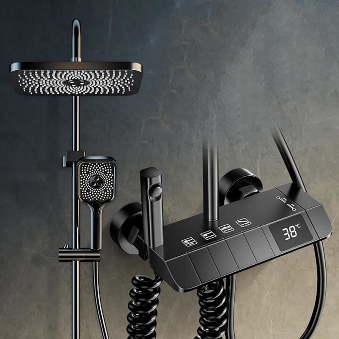Température constante de 38 ° : notre ensemble de douche thermostatique est équipé d'une vanne mélangeuse de haute qualité pour garantir que la température de l'eau reste à 38 °C, assurant une expérience de douche confortable. Surface chrome avec revêtement anti-oxydation, non seulement esthétique, mais également résistante à la corrosion. DES DOUCHES SIMPLEMENT MEILLEURES - La pomme... EN STOCK livraison rapide pour l'Ensemble Mitigeur douche Douchette anticalcaire avec support orientable Flexible Acier TRES CLASSIC 24216701 au meilleur prix La norme G1/2 convient à presque tous les systèmes de douche Ensemble mitigeur de douche de haute qualité : la barre mitigeur thermostatique de douche est fabriquée en laiton. Les brûlures de la peau sont évitées grâce à la protection anti-brûlure intégrée. Flexible et confortable : la hauteur du mitigeur de douche peut être ajustée entre 800 et 1200 mm, ce qui est adapté pour les personnes de différentes hauteurs; la douchette peut répondre à différents besoins de douche. Design moderne : l'ensemble mitigeur de douche thermostatique comprend une pomme de douche, une douchette multifonction et un robinet de douche thermostatique, ce qui attirera tous les regards dans votre salle de bain. Vous pouvez également régler la température souhaitée avec un bouton, de sorte que vous pouvez vous doucher en toute confiance Forte résistance à la pression de l'eau, résistance aux hautes températures, ne vieillit pas facilement, durable. Ensemble Salle De Bain Mitigeur Avec Ensemble Bain-douche Olyos Chromé D2504AA Porcher Mitigeur Douche Grohe Mitigeur bain-douche Olyos C2 monotrou avec ensemble douche 1 jet... Douche Système Noir Set de Douche Mitigeur thermostatique cuivre Douche
