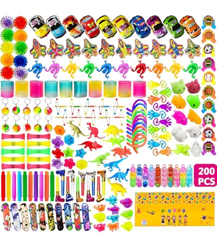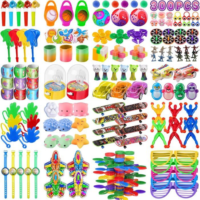 Lot de 100 cadeaux d'anniversaire pour enfants : ce lot contient 100 jouets amusants et populaires pour enfants, y compris 5 bracelets pour enfants, 10 hommes smiley extensibles, 10 balles d'étirement, 10 mains collantes, 5 pneus arc-en-ciel, 5 petits marteaux, 5 petits dinosaures, 10 tatouages de dinosaures, 10 tatouages licorne, 5 tubes pop, 2 0 ventilateurs de fête. Gagnez du temps et des efforts : assortissez soigneusement avec une variété de cadeaux d'anniversaire amusants pour enfants. Idéal comme petit cadeau pour remplir des sacs d'anniversaire, le calendrier de l'Avent, comme cadeau d'anniversaire pour les anniversaires d'enfants et comme jouet pour garçons et filles. Lot de 100 cadeaux d'anniire pour enfants : ce lot contient 100 jouets amusants et populaires pour enfants, y compris 5 bracelets pour enfants, 10 hommes smiley extensibles, 10 balles d'étirement, 10 mains collantes, 5 pneus arc-en-ciel, 5 petits marteaux, 5 petits dinosaures, 10 tatouages de dinosaures, 10 tatouages licorne, 5 tubes pop, 2 0... Bonjour, 100 Pièces Cadeau Anniversaire Enfants, Assortiment de Jouets Party Cadeau, Party Favors Anniversaire Enfant Pour Fille Garçon, Cadeaux de Noël du... Cadeau Invite Anniversaire Enfant Cadeau Anniversaire Enfant, Assortiment Jouets Anniversaire, 101 Pcs Pochette Surprise Anniversaire Enfant 5 avions en polystyrène. Assortient Jouets,48 Pièces Party Favors Jouets pour Enfants,Pinata Avec notre kit de jouets, le plaisir de jeu est garanti. Matériau de qualité supérieure : nos jouets sont fabriqués à partir de matériaux respectueux de l'environnement, non toxiques, durables, réutilisables, conformes au label de sécurité de l'UE, sans danger pour les enfants. Constatez-le par vous-même.