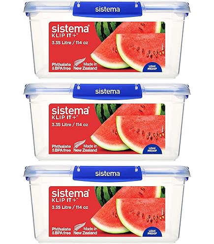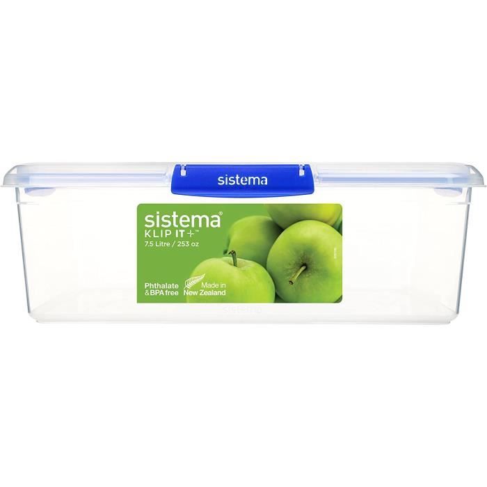 Ce conteneur fait partie de la gamme de stockage alimentaire Sistema KLIP IT avec un système d'empilage compact pour économiser de l'espace – Idéal pour organiser la cuisine actuelle et fournir une des solutions de stockage alimentaire complètes au monde. Boîte alimentaire carrée Sistema Klip It Plus 5,5L - CH246 Capacité 5,5L, forme carrée empilable pour optimiser l'espace. Hermétiques grâce à leurs clips et joints, elles gardent tes aliments frais plus longtemps. Passent au lave-vaisselle, micro-ondes, frigo et congélateur. Sans BPA ni phtalates, fabriquées en Nouvelle-Zélande. Parfaites pour les meal preps Tupperware Plastique Sistema KLIP IT Récipient De Conversation Des Aliments | Récipient Boite Hermetique Passe au lave-vaisselle (panier supérieur), micro-ondes (sans couvercle), réfrigérateur et congélateur Boîte à repas rectangulaire avec couvercle Duralex Freshbox Bleu 1 1 L. 14,79 EUR Neuf... Avec les clips de verrouillage faciles à utiliser et le joint flexible, les aliments restent frais plus longtemps. Avec clips de verrouillage faciles Sistema KLIP IT Ces récipients rectangulaires sont adaptés pour le stockage d'aliments secs. Boîte de conservation KLIP IT PLUS, set de 3 • en plastique sans phtalates • clips faciles à fermer • joint flexible et étanche • passe au lave-vaisselle (dans le compartiment supérieur) • passe au micro-ondes (sans couvercle) Exemples d'utilisation : - pour conserver ou garder les aliments au frais - pour un gain de place, récipients empilables dans le réfrigérateur, le congélateur ou le garde-manger - convient également pour congeler, décongeler et réchauffer les aliments au micro-ondes