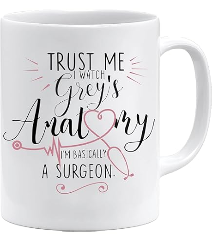 Si vous êtes fan de Greys Anatomy ou si vous connaissez quelqu'un qui l'est, alors cette tasse est un must. Greys Anatomy Acen Merchandise Tasse Avec Inscription En Allemand Greys Cadeau De Noel Pour Sa Soeur Elle est également un merveilleux ajout aux cadeaux de mariage pour les jeunes mariés pour profiter de moments matinaux communs. Notre tasse magique de 11 onces est le cadeau parfait pour les femmes qui aiment plonger dans un monde d'esthétique et de détente. Tasse à café, tasse à thé, bol ou mug, équipez votre cuisine avec notre large choix de vaisselle. En ligne ou dans de 450 magasins Ce n'est pas seulement un article de fan amusant, mais aussi un excellent cadeau pour maman ou un cadeau pour la sœur qui aime la série. Cette tasse est parfaite non seulement pour le café, mais aussi pour le thé et d'autres boissons. Acen Merchandise Tasse avec inscription en allemand Greys Anatomy Tasse | Cadeaux amusants | Tasse à café | Adieu Collegin | Cadeau de retraité homme... Découvrez notre tasse amusante de 11 onces qui fait rire et parle avec l'inscription « Glaub mir, ich schaue GREYS ANATOMY, ich bin quasi ein Chirurg» Cette tasse n'est pas seulement un cadeau parfait pour les fans de Greys Anatomy, mais aussi un excellent ajout à votre cuisine ou votre bureau. Avec son adorable design de loutre snooze, elle n'est pas seulement une décoration esthétique, mais aussi un compagnon pratique pour le plaisir quotidien du thé ou du café. Grey's Anatomy Saison 20 Mug Greys Anatomy You Are My Person - Changement De Couleur Mug Mum Que vous soyez à la recherche d'un cadeau d'adieu spécial pour une collègue chère ou un cadeau pour une amie qui fête son 30e, 40e ou 18e anniversaire, cette tasse est polyvalente et convient à différentes occasions. Avec sa citation humoristique, elle apporte joie et divertissement au quotidien. Cette tasse est idéale comme cadeau pour les jeunes mariés, que ce soit pour la mariée elle-même ou pour le marié. Surprenez votre petit ami ou votre petite amie avec ce cadeau original qui célèbre sa passion Grey Anatomy. Dites adieu à la vaisselle ennuyeuse et embellissez votre fête de Noël avec notre tasse de Noël qui peut également servir d'assiette de Noël.