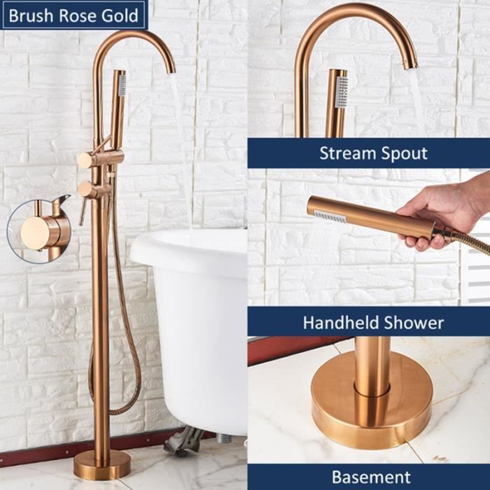 Buildingsup Robinet De Baignoire Autoportant Monocommande à Fixation Au Sol Avec Douche A Main Bfld1031 Construction entièrement métallique : laiton massif, fabriqué à partir de laiton massif de haute qualité pour éviter la corrosion et résistant à la rouille pour plus de durabilité et de fiabilité Fonctions : double fonction. Livré avec des conduites d'eau à filetage 1/2 (adaptateur de filetage 3/8 et 1 paire de tuyaux d'extension de 20,3 cm dans le colis pour différents besoins). Solepearl banheiro chuva cachoeira chuveiro torneiras conjunto de montagem na pa Augusts Robinet de baignoire autoportant Robinet de baignoire... Livré avec un bouton de dérivation, passez du bec de baignoire à la douchette à main Contenu : corps du robinet de baignoire sur pied, tube de robinet en laiton, douchette à main, tuyau froid et chaud, couvercle de base, matériel de montage et instructions d'installation (français non garanti). Design fiable : le bec verseur à angle droit peut pivoter à 360 degrés. 【Construction entièrement métallique】Informations d'utilisation de l'eau : 1,61 gpm 6,12 l/min en laiton massif, ce robinet de baignoire autoportant est fabriqué à partir de laiton massif de haute qualité et de chrome poli avec finition résistante à la corrosion et à la rouille pour plus de durabilité et de fiabilité Contenu : corps du robinet de baignoire, tube de robinet en laiton, douche à main, tuyau froid et chaud, couvercle de base, matériel de montage et instructions d'installation (français non garanti). Le robinet de baignoire autoportant VEVOR élégant et durable offre un bec pivotant à 360 °, un débit élevé et une douche à main flexible pour une expérience de bain luxueuse. Bec pivotant à 360 degrés et douchette à main.