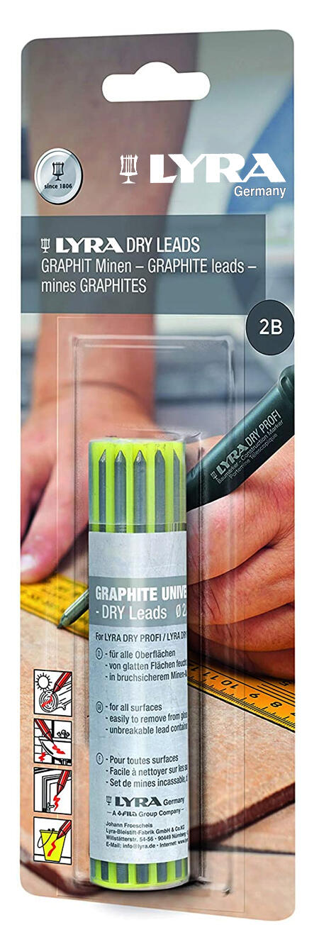 Fonction 2 en 1 : avec capuchon comme porte-mine pour marquer et écrire avec précision, sans capuchon comme marqueur à trou profond pour les travaux de perçage et de montage Mines Pica Dry Bleispitz 1492 Lot De Arqueurs 2 En 1 (porte-ine 2 En 1, Trou Profond Mine Pica Dry Fonction 2 en 1 : porte-mine avec capuchon, marqueur à trou profond sans capuchon pour les travaux de perçage et d'assemblage. Bleispitz Lot de marqueurs 2 en 1 1492., Le lot de marqueurs à trou profond Bleispitz 1492 combine marqueur et porte-mine en un seul stylo : avec capuchon comme porte-mine précis pour marquer et écrire, sans capuchon comme marqueur à trou profond pour les travaux de perçage et de montage. Le Pica Dry est le marqueur de chantier professionnel et convient à presque toutes les surfaces de matériaux. Qu'elles soient sèches ou humides, lisses ou rugueuses, poussiéreuses ou rouillées, grâce au vaste choix de mines, on est parfaitement équipé pour chaque projet Boîtier triangulaire ergonomique : tient bien dans la main, facilite le travail précis et augmente le confort lors d'une utilisation prolongée Couleur du boîtier : bleu. STYLO MARQUEUR PROFESSIONNEL trou profond pour le travail des métaux et... Extras pratiques : capuchon et taille-crayon jaunes rechargeables pour une longue durée de vie. Le boîtier triangulaire ergonomique assure une prise en main sûre et un travail confortable. Bleispitz 1492 Lot de marqueurs 2 en 1 (porte-mine Le stylo est rechargeable, durable et conçu pour les artisans, les professionnels et les bricoleurs. Caractéristiques techniques : marqueur et porte-mine 2 en 1., Mine : mine universelle graphite 120 x 2,8 mm., Forme : ergonomique, triangulaire. Marqueurs professionnels : durables, rechargeables, pour les artisans, les professionnels et les bricoleurs. Capuchon et taille-crayon : jaune. Contenu de l'emballage : Lot de marqueurs à trou profond Bleispitz 1492 2 en 1 (marqueur et porte-mine, bleu/jaune).