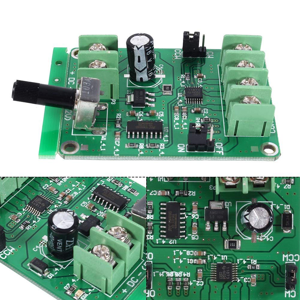 Contrôleur Moteur haute puissance : Ce contrôleur de moteur sans balais présente une tension large et une puissance élevée, et convient aussi bien aux petits moteurs qu'aux grands moteurs. Une mauvaise connexion peut provoquer une brûlure de l'article. Protection contre les inversions de tension : ce contrôleur de moteur sans balais prend en la protection contre les inversions de tension, qui peut répondre à vos besoins de protection., Contrôl Commande de moteur brushless DCC1100_0 Carte contrôleur de pilote sans balais, 9V-12V DC, pour. 5,88€. 1 pièce. Carte contrôleur de pilote sans balais, 9V-12V DC, pour disque dur de moteur 3/4 · 26... Contrôleur De Vitesse Moteur Sans Balais Brushless ( PWM Protection contre les surintensités b : Cette carte de contrôle sans balais a pour fonction de protection contre les surintensités. 【Protection contre les inversions de tension】: Ce contrôleur de moteur sans balais prend en la protection contre les inversions de tension, qui peut répondre à votre besoin de protection. Utilisez de gros câbles en raison du jeu des vis. Le forfait comprend : 1 x carte d'entraînement moteur Remarque : le câble du moteur sans balais doit être fermement connecté à la plaque d'entraînement. 【Controller Contrôleur de moteur haute puissance】: Ce contrôleur de moteur sans balais présente une tension large et une puissance élevée, et convient à la fois aux petits moteurs et aux gros moteurs.