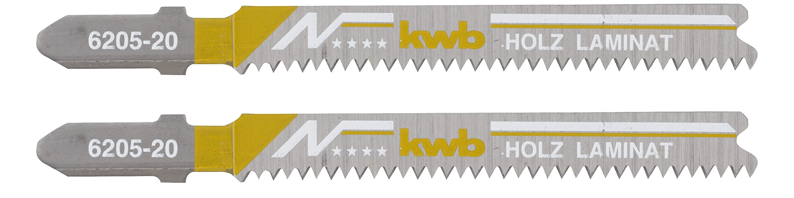 NETTETE LONGUE DURÉE: Les deux lames de scie sauteuse à queue en T présentent une denture trempée qui assure un tranchant durable tout en permettant une grande flexibilité de la lame. Kwb Lames De Scie Sauteuse Pour Le Métal En Bimétal Robuste, Très élastiques, Avec Tige à Une Seule Came (tige En T), Denture à Piquer, Durée De Vie. 4.7/5... LAME DE SCIE SAUTEUSE EN T: Avec la queue à une seule came (queue en T), les lames de scie sauteuse pour le bois disposent du logement le plus courant et s'adaptent ainsi à de nombreuses scies sauteuses du commerce. TRANSPORT OPTIMAL DE LA SCIESSE : Pour un transport optimal de la sciure et une coupe rapide du jeu de lames de scie sauteuse, les dents trempées sont affûtées en croix, en angle libre et en cône. Lame De Scie Sauteuse KWB Lames De Scie Sauteuse Pour Le Travail Des Métaux, Tige En T HSS 624220 5753620 Lame De Scie Sauteuse Bosch Kwb 620530 Lames De Scie Sauteuse, LAMINÉ, Travail Du Bois Bi Metal 2 Pc S 86842054 Les lames de scie sauteuse pour bois kwb sont en bimétal. BI-MÉTAL STABLE : Les lames de scie sauteuse pour le bois sont fabriquées en bimétal stable, ce qui leur confère une durée de vie et une résistance supérieures à celles des lames HCS normales.