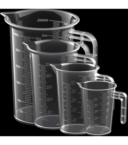 Plastique durable Les tasses à mesurer sont fabriquées en plastique durable de qualité alimentaire qui ne se déforme pas ou ne se casse pas en cas de changements de température. Caractéristiques du produit : Matériau : alliage Plastique PP - Couleur : translucide - Capacité du verre doseur : 100 ml - Quantité : Taille 4 : Déviation en forme de V Les tasses à mesurer ont un design en forme de V qui est précis et ne fuit pas facilement lorsque vous versez le liquide. La poignée antidérapante offre à vos mains une bonne prise en main lorsque vous versez le récipient à mesurer en plastique. - Chaque tasse est conçue pour mesurer et lire les graduations avec un ensemble de gobelets gradués Avec le verre doseur transparent en relief, l'unité de mesure requ peut être rapidement réglée avec de petites erreurs de mesure.Le verre doseur est fabriqué en plastique de haute qualité, matériau de qualité alimentaire, non toxique, résistant aux hautes températures, pas facile à déformer.Petit gobelet doseur avec un raccord de... Verre Doseur Verre Set De 160 Gobelets Doseurs (30 Ml, Transp., Gradués, Pour Usage Verre Doseur En Verre Il n'est pas facile à casser, même s'il tombe d'un endroit élevé. Lot de 3 verres doseurs de précision 50 ml 100 ml 250 ml avec Avec le verre doseur transparent en relief, l'unité de mesure requise peut être rapidement réglée avec de petites erreurs de mesure. C'est pratique et rapide et vous fait gagner un temps précieux lors de l'utilisation. Le verre doseur est fabriqué en plastique de haute qualité, matériau de qualité alimentaire, non toxique, résistant aux hautes températures, pas facile à déformer.