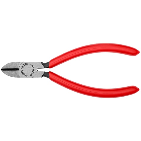 Demi mors avec dentelée des surfaces de préhension. Acier à outils spécial, forgé, trempée de haute qualité. Recouvert de plastique poignées. La pince coupante Knipex à long bec central, style téléphone, pince coupante latérale à bec effilé, également connue sous le nom de pince téléphonique. Saisit et sépare les fils simples dans les harnais. Comprend une pince coupante centrale pour les fils souples Pince coupante de côté à forte démultiplication gainée bi-matière... Pince Coupante PINCE DE SERRAGE,6inch Long Nose-- Industrielle De 9 Pince Knipex Pince coupante - KNIPEX - becs longs demi-ronds - acier vanadium trempé