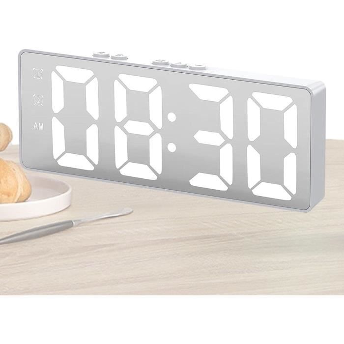 1., Mini simple : l'horloge a une apparence simple et mini, non seulement peut toujours faire attention à l'heure, mais peut également être utilisée comme ornement., 2., Scène applicable : convient pour la maison, la chambre, le salon, le bureau, etc. peut être utilisé pour la décoration de chevet, les cadeaux, etc. EJ.life Réveil électronique Réveil numérique LED Fonction de mesure de Décoration de la maison : ce réveil miroir élégant et simple peut décorer votre chambre, salon, bureau, dortoir pour créer une décoration de pièce simple et avancée. Volume et luminosité réglables : l'horloge numérique a pour fonction de régler le volume et la luminosité pour répondre à différents besoins et préférences dans différents environnements. Fonction Snooze Scène applicable : convient pour la maison, la chambre, le salon, le bureau, etc. Reveil Miroir Mini Réveil électronique LED Miroir Pour Chambre à Coucher, Salon Pendulettes De Bureau peut être utilisé pour la décoration de chevet, les cadeaux, etc., 3., Design miroir spécial : l'horloge numérique utilise un design miroir spécial, n'est pas facile à tacher et est facile à nettoyer., 4., Plusieurs méthodes de placement : l'affichage de l'heure de l'horloge alimenté par USB a une lumière rouge et peut être placé verticalement, horizontalement ou accroché au mur., 5., Matériaux de : fabriquée en plastique de haute qualité, l'horloge est robuste, , pas facilement endommagée et a une longue durée de vie. Plusieurs méthodes de placement : l'affichage de l'heure de l'horloge alimenté par USB a une lumière rouge et peut être placé verticalement, horizontalement ou accroché au mur. Matériaux de : fabriquée en plastique de haute qualité, l'horloge est robuste, , pas facilement endommagée et a une longue durée de vie. Vinabo Réveil Nuérique iroir, LED iroir Horlogue Digitale Réveil de...
