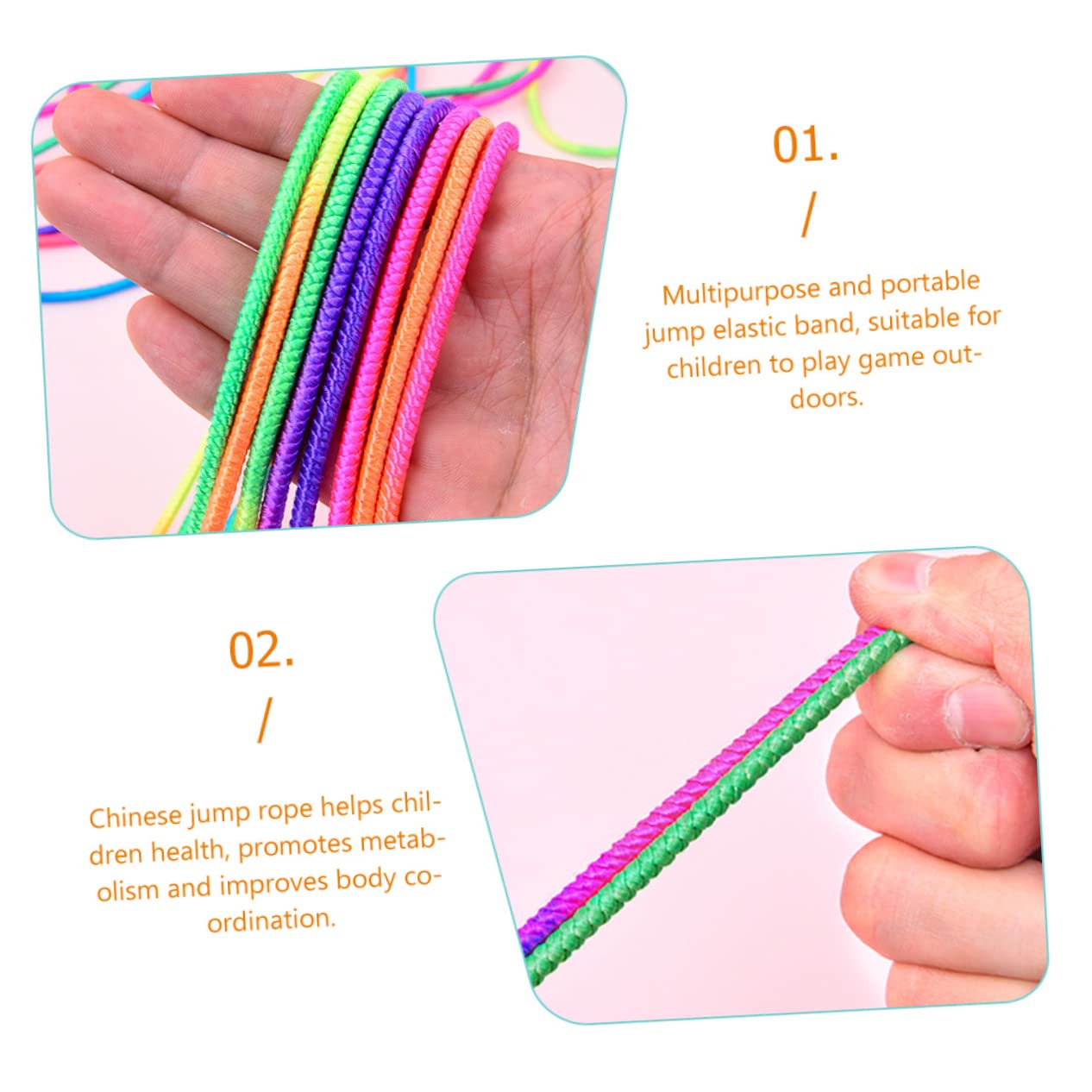 Idéal pour les jeux en plein air. -Il a un design simple, mais très pratique à utiliser. Elastique Jeux A Sauter Lot De 2 Cordes Sauter Chinoises Arc-en-ciel Pour Enfants, Jeu D'int Corde A Sauter - La corde à sauter est excellente pour l'entraînement pour le sport ou pour perdre du poids. Partagé avec des amis pour une expérience de jeu plus amusante et énergique Rack de élastiques/cordes à sauter | Techno Sport Tunisie 1 corde à sauter chinoise élastique emballée individuellement : comprend une corde à sauter chinoise de couleur arc-en-ciel. Les élastiques et cordes à sauter Comment jouer : faites un nœud, trouvez deux amis et commencez à vous amuser. Bon cadeau : vous pouvez jouer à de nombreux jeux intéressants avec des cordes à sauter colorées, ce qui peut aider votre enfant à améliorer la coordination et l'agilité, c'est un bon choix pour offrir les cordes à sauter chinoises comme cadeau d'anniversaire aux enfants Nous les avons conçus en utilisant des couleurs arc-en-ciel attrayantes pour faire du jeu une affaire attrayante Corde à sauter pour enfants : la corde à sauter chinoise aide la santé des enfants, favorise le métabolisme et améliore la coordination corporelle. Corde à... Mat riau durable fabriqu e partir de mat riaux durables et r sistants, cette corde sauter aux jeux rigoureux sans se casser, corde sauter chinoise, de saut, Encourage l'activit physique favorise l'activit physique, aide les enfants d velopper la coordination et la flexibilit , corde de style chinois, corde color e de style chinois, Conception centr e sur l'enfant sp cialement con ue pour les enfants, garantissant qu'elle r pond leurs besoins, corde sauter lastique, corde sauter lastique color e Les matériaux de qualité donnent à la corde à sauter une grande élasticité dans la gamme de sécurité Conçus pour attirer l'attention : ces jouets d'extérieur pour enfants feront sourire les tout-petits au premier coup d'œil.