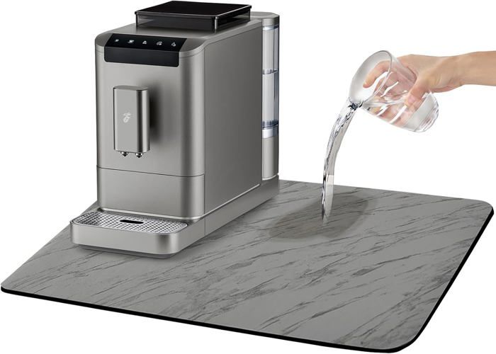 Ce matériau est connu pour sa capacité à absorber l'humidité et à neutraliser les odeurs, ce qui en fait un choix sûr et durable pour l'environnement de la cuisine Notre tapis d'égouttoir absorbant est l'accessoire parfait pour votre cuisine, conçu pour garder votre espace propre et sec. Tapis d'égouttoir super absorbant pour évier 40 x 50 cm avec 3 chiffons en microfibre de cuisine, tapis sous machine à café · Non ajouté · Détails du produit... Tapis égouttoir Pour évier Egouttoir Pour Vaisselle Tapis égouttoir Vaisselle 40x50 Cm - Absorbant Et Antidérapant Pour Machine à Café Tapis égouttoir Pour Vaisselle Tapis Machine à Café Absorbant Tapis Vert Sauge Exslend Tapis De SéChage Vaisselle, Tapis Vaisselle Absorbant, Tapis D'éGouttement, Tapis Egouttoir Pour Machine à Café, , 40x50cm - Maison Coffee Mate Le tapis d'évier de cuisine égouttoir s'adapte parfaitement à tout style de décoration, améliorant l'esthétique globale de la cuisine.