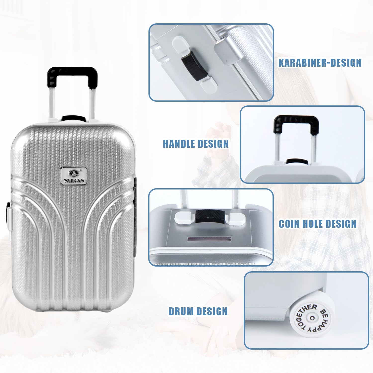 Matériau : plastique Couleur : rose, argent, orange., Poids : environ 320 g. Tirelire à Clé Peut être un beau ou un complément à toute collection. Monsieur Tirelire En Ligne Tirelire Créative Valise Simulation Bagages - Décoration De Bureau Tirelires Originales Convient pour chambre, salle de bain, couloir, café, salon, allées et bureau, facile à installer. Matériau ABS de haute qualité pour une durabilité accrue · Conception réaliste avec poignée extensible et roues rotatives · Utilisation sûre grâce aux bords... Tirelire Enfant Cube, Métal Argenté - Daniel Crégut Développement de la capacité : préhension, sens, développement intellique, communication parent-enfant, jouet interactif. Contenu de la livraison : 1 valise tirelire en forme de cochon.