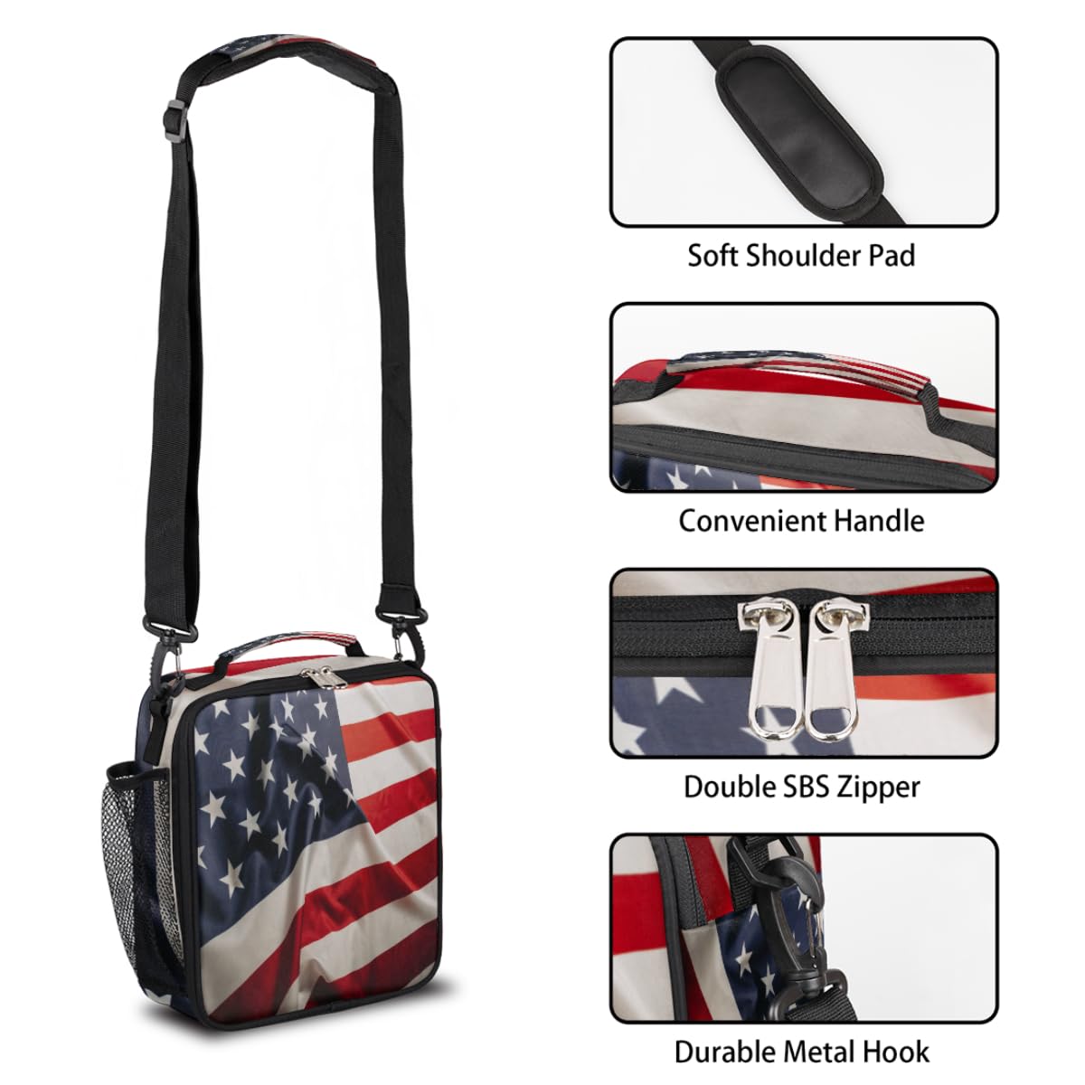 Sacs à Déjeuner Pour Femme, Sac à Déjeuner Pour Le Travail, Sacs à Déjeuner Isothermes, Grand Comme sac à déjeuner, sac de pique-nique, sac à goûter de voyage ou sac de courses. Vous pouvez l'emmener au bureau, en excursion, à la plage et sur le terrain de sport. Facile à nettoyer avec un chiffon humide, ne pas utiliser d'eau de Javel. Sac à Lunch Isolé Avec Bandoulière Réglable, Guadeloupe Durable : la fermeture éclair bidirectionnelle robuste vous permet de placer et de sortir facilement la boîte à déjeuner. Instructions de lavage : lavage à la main. Imperméable et étanche, boîte à déjeuner légère et pliable, poignée solide avec boucle amovible, vous pouvez la fixer sur la bandoulière du sac à dos, sac de sport ou sac de voyage, facile à transporter. Différentes méthodes de manipulation : manipulation améliorée, fermoirs mains libres amovibles et réglables permettent à vos mains de tenir d'autres articles plus librement, plus élégants, élégants et charmants. Notre sac à déjeuner isotherme maintient vos aliments/boissons à la meilleure température. Sac à déjeuner isotherme réutilisable avec imprimé drapeau américain du 4 juillet pour femme/homme, travail, pique-nique, école, voyage. Sac à déjeuner... Le sac à déjeuner unisexe est non seulement adapté pour le travail, mais aussi pour les activités de plein air telles que la pêche, la randonnée, les pique-niques et les voyages.