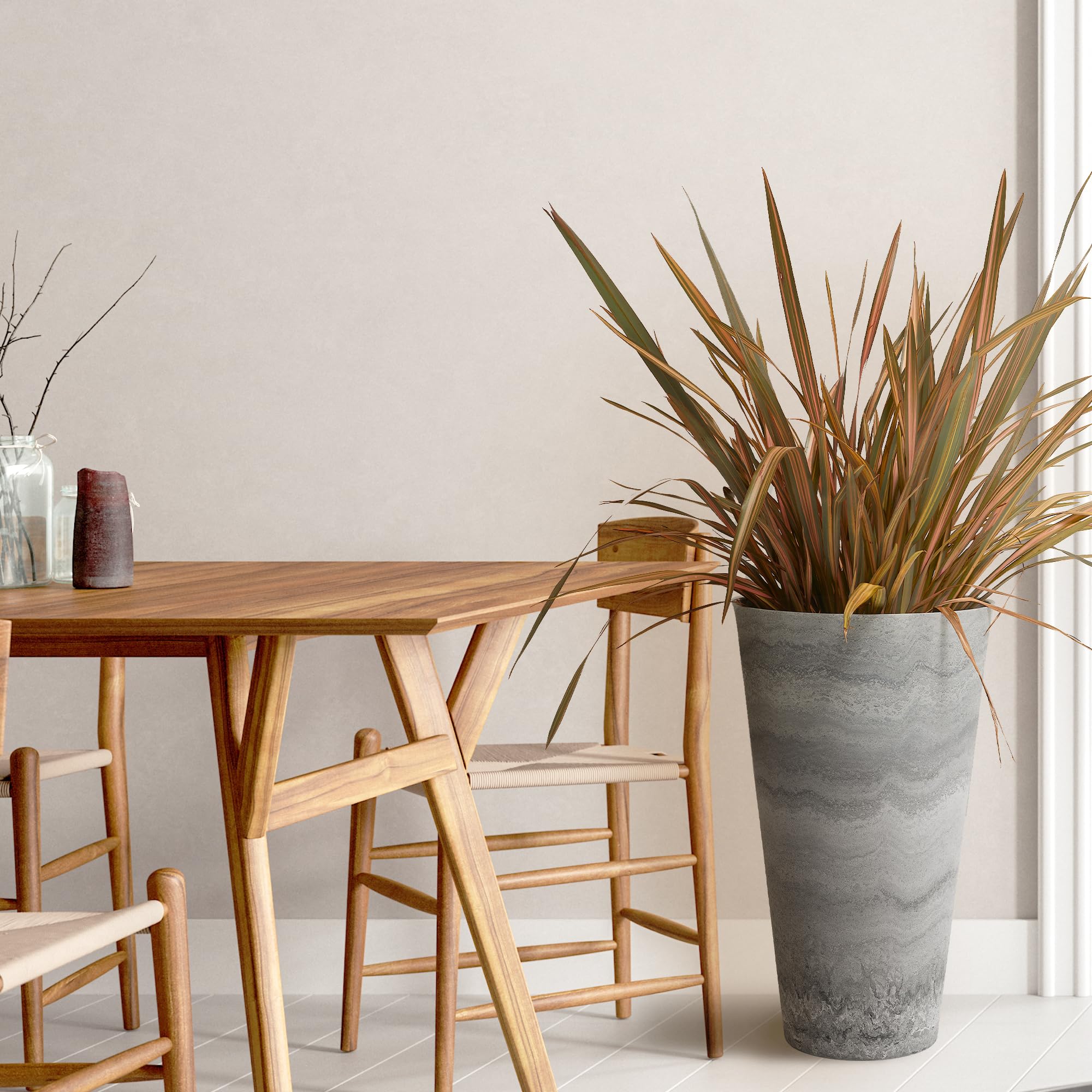 Améliorez votre espace intérieur ou extérieur avec le lot de 2 pots de fleurs ronds coniques Worth Garden gris mat. Construction durable : fabriqués à partir de plastique de haute qualité, ces pots sont conçus pour résister aux éléments et fournir une utilisation durable. Résistantes et durables, elles sont parfaites pour une utilisation en intérieur et en extérieur. Worth Lot De 2 Grands Pots De Fleurs Ronds Classiques En Conception avec trous de drainage et plateau] Ce pot de fleur pour cadre de fenêtre est livré avec un plateau pour pot de fleur et 2 trous de drainage, qui... Worth Lot De 2 Grands Pots De Fleurs Ronds Classiques En Plastique Idéal pour les porches, terrasses, ou tout espace de vie, ces pots polyvalents vous permettent de créer une atmosphère luxuriante et accueillante. Envoyez un e-mail à tout moment pour obtenir Notre équipe est là pour vous aider ! Taille généreuse : hauteur de 62,2 cm offrant suffisamment d'espace pour que les plantes s'épanouissent. Améliorez votre environnement avec le lot de 2 pots de fleurs ronds coniques Worth Garden gris mat. Design léger mais robuste permettant un déplacement pratique si nécessaire.