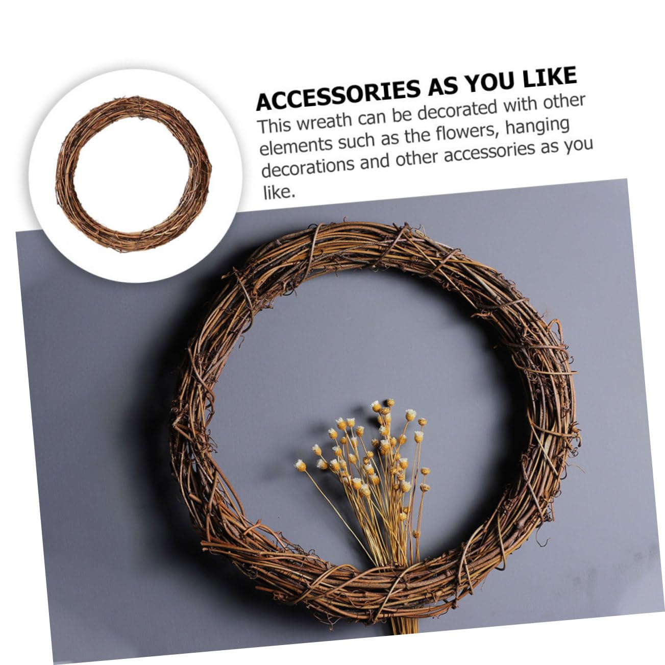 Ce cadre de couronne de bois peut être utilisé pour une variété de couronnes. WE05207-Couronne de Vigne Artificielle de Glycine pour Décoration d'Arc... A-30cm - Couronne En Osier Et Rotin, Anneau De Vigne De Noël, Cercle Décoration de Couronne en Osier de Noël Anneau Vigne Vigne Cerceau Floral Naturel 20 cm Ornements artisanaux Accessoires : : Cuisine et MaisonDemandez le retour de ce produit dans les 14 jours suivant la réception, pour quelque raison que ce soit, afin d’obtenir un remboursement complet (prix de l’article et frais de livraison) dans le cadre de votre droit de rétractation... Couronne de vigne en osier - Décoration de Noël - Anneau de vigne en Matériau : osier de rotin. Que ce soit le printemps, l'été, l'automne ou l'hiver - ces couronnes de vigne sont un bel accessoire de maison à chaque saison La couronne de rotin ronde est parfaite pour décorer des tables, des murs, des vases, des portes et bien plus encore à l'intérieur La couronne décorative est en rotin robuste et naturel et a un noyau stable pour plus de durabilité La conception spéciale en rotin de Noël le rend génial pour Noël pour ajouter des ambiances amusantes et festives.