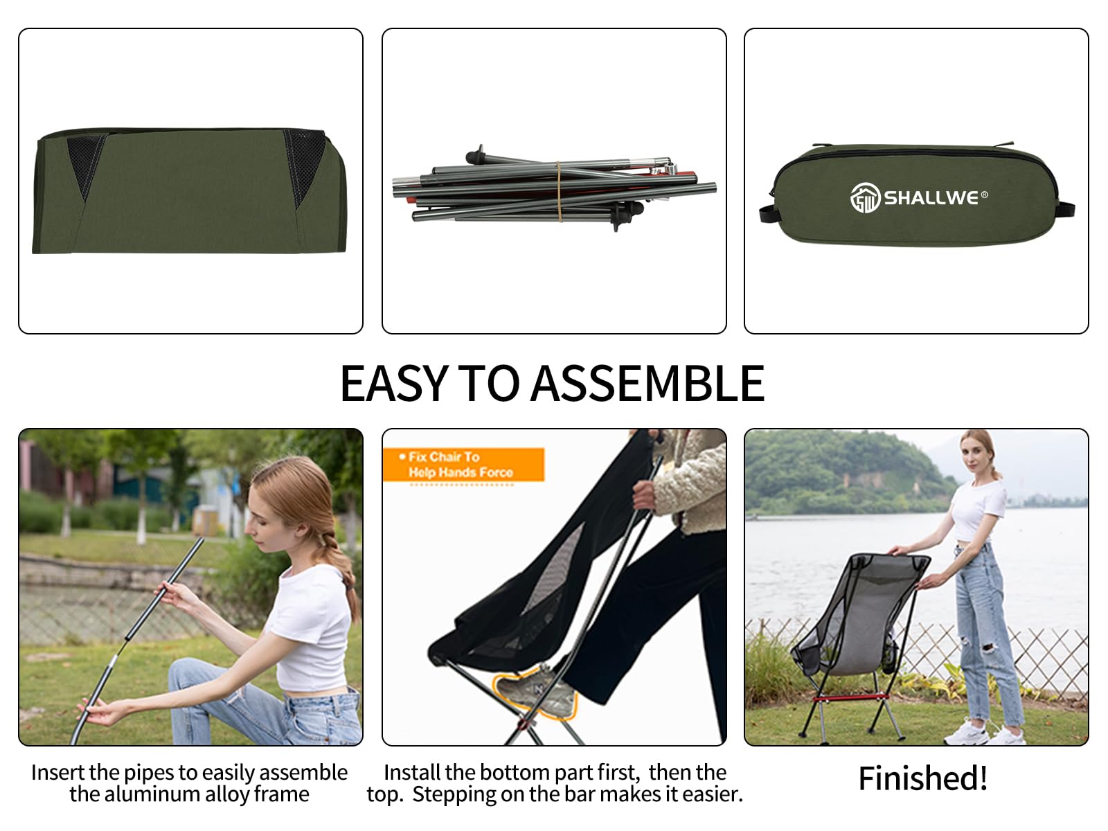 La chaise pliable légère relie la tige en aluminium avec une corde télescopique élastique et peut être facilement installée en moins d'une minute. Le tissu en filet est respirant, imperméable et résistant à la transpiration Cadre en aluminium 7075 et tissu Oxford 600D : la chaise de camping pliante SHALLWE dispose d'un cadre en aluminium 7075, offrant à la fois résistance et portabilité. Installation facile et rangement compact : grâce à notre astuce d'installation, cette chaise de camping portable s'assemble en quelques minutes et se range dans le sac de transport lorsqu'elle n'est pas utilisée. Chaise de camping pliable - Vert anis - randonnee-camping | Rakuten Chaises De Camping Pliantes Chaise Pliante Portable Extérieure En Aluminium, Chaise Pour Plage, Randonnée, Camping | Série Chaise Chaise Pliante Pour Camping Le sac de transport inclus assure un transport sans effort. Peu importe où vous êtes, cette chaise offre confort, portabilité et durabilité pour tous vos besoins en plein air Une chaise, prête pour toutes vos activités de plein air : cette chaise pliante est idéale pour la randonnée, les excursions à la plage, et plus encore. Rangement pratique et caractéristiques pratiques : cette chaise portable dispose d'une poche latérale pour ranger les petits objets essentiels et d'un porte-gobelet pour garder vos boissons à portée de main. La hauteur du dos de 58 cm et l'oreiller intégré offrent un soutien supplémentaire du cou et du dos. SHALLWE Chaise De Camping Portable SHALLWE Ultralight, Chaises Pliantes Compactes En Aluminium Kvittra – Chaises de camping compactes pour adultes, enfants... Poids : 1,45 kg, charge maximale : 136,1 kg, ce qui en fait une chaise de camping robuste adaptée aux adultes.