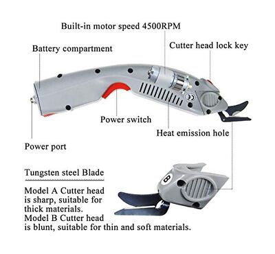 Comment remplacer le porte-outil et la batterie ? Deux têtes de coupe : ces ciseaux électroniques sont livrés avec 2 lames, l'une est une tête de coupe qui est tranchante et adaptée pour couper des matériaux épais ; l'autre est une tête de coupe B qui est émoussée et adaptée pour couper des matériaux fins MXBAOHENG WBT-1 Ciseaux à Tissu électriques 3,6 V Ciseaux à Main en Tissu Coupe-tissu Sans Fil avec Une Batterie (2 têtes de coupe (A+B)) 【Application】 Le coupe-tissu est largement utilisé pour les industries textiles telles que la ligne de production de vêtements, de chaussures, de chapeaux et de cravates. 【Lame en acier tungstène】 Lame en acier au tungstène usiné avec précision, solide et durable, haute dureté, haute rigidité. Appuyez sur le bouton rouge et maintenez-le enfoncé pour tirer la batterie vers l'arrière et la retirer pour la remplacer. Coupe de la soie Il peut couper efficacement le cuir, le papier, les tissus, les tapis et autres matériaux textiles, ce qui économise beaucoup de travail. Large application pour la coupe de différents matériaux 【Connecteur anti-arrêt】L'interface d'alimentation est verrouillée avec une vis anti-arrêt pour empêcher le cordon d'alimentation rechargeable de tomber lors de l'utilisation, ce qui est plus sûr et pratique. Secateur Electrique Sans Fil WBT-1 Ciseaux électriques Pour Couper Le Tissu Sans Fil Batteur Electrique XBAOHENG ciseaux à tissu sans fil électrique coupe ronde épaisseur de... MXBAOHENG Tijeras eléctricas Wbt-1 cortadoras de tela recargables