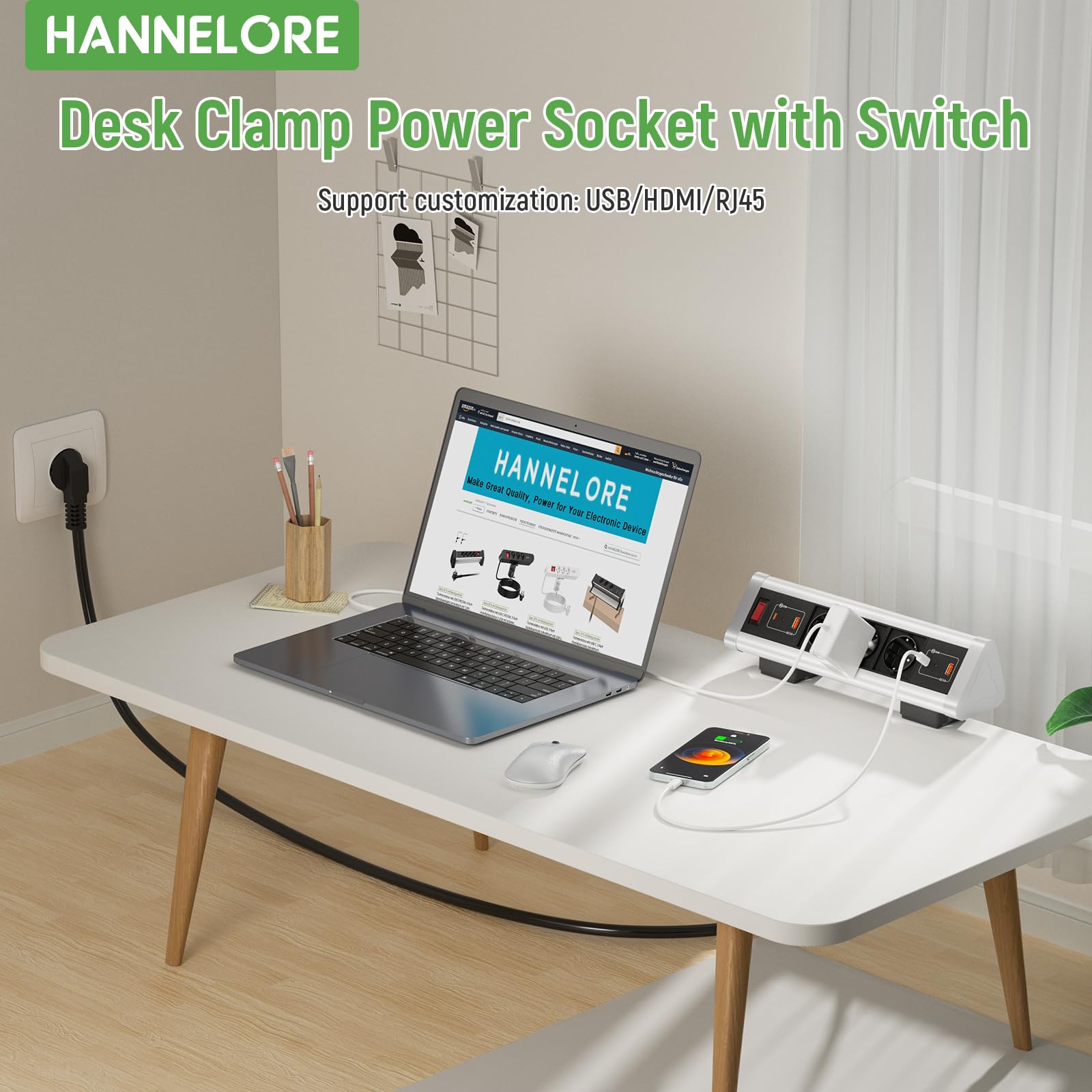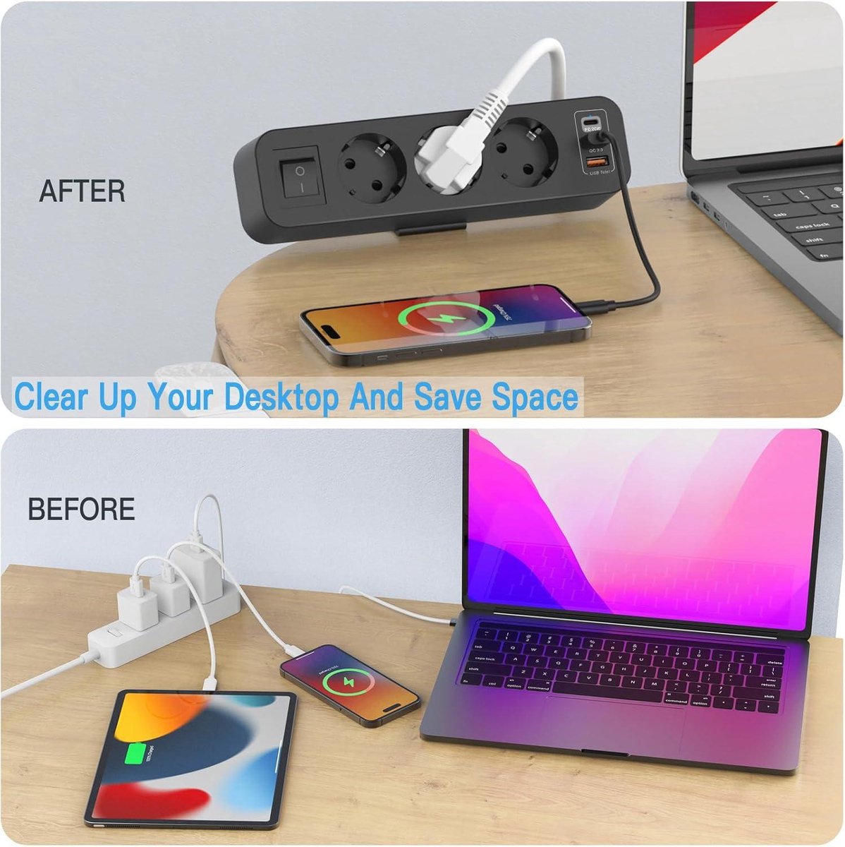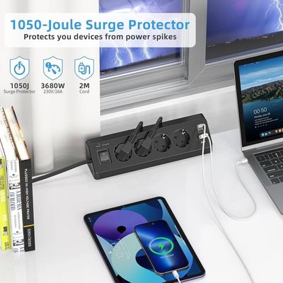 INSTALLATION SANS PERÇAGE: La prise bureau se fixe en un clic grâce à sa pince robuste : pas de perçage, pas d’outil, montage sur plateau de 4,5 cm max. La fixation sans perçage s’effectue en quelques secondes : glissez simplement la pince sur le bord de votre bureau (épaisseur ≤ 4,5 cm) et serrez. Prise de courant encastrée pour meubles : vous pouvez commencer par sortir le carton et découper un rectangle de 12,7 x 4,69 cm (L x l) avec 3,7 cm d'espace nécessaire sous la table. pour vous assurer que l'encoche encastrée s'adaptera, puis découpez des trous si nécessaire en fonction de la taille découpée. Évitez d'enchevêtrer les... Le câble de 2 m offre une grande liberté de positionnement – vous n’êtes plus limité par la longueur du cordon. Adoptez la LustLocke Multiprise et transformez votre bureau en espace ordonné, performant et sûr ! Économies d’énergie et sécurité renforcée : parfait pour la multiprise électrique avec interrupteur au bureau, dans le salon ou la chambre d’enfant. Et pour encore plus de praticité, un interrupteur intégré vous permet d’éteindre complètement la multiprise USB d’un simple geste, évitant le gaspillage d’énergie et renforçant la sécurité électrique. EU KR Table prises encastrées PD20W prise intégrée avec 4 prises 4 USB bureau Extension de bureau meubles cachés prise de courant DESIGN COMPACT ANTI‑ENCOMBREMENT: Conçue en ABS ignifuge, cette multiprise noire au format slim se pose discrètement en bord de bureau ou sur le pied de table. PRISE MULTIPLE AVEC INTERRUPTEUR: Un simple appui sur l’interrupteur coupe totalement l’alimentation, sans débrancher. Parfaite multiprise avec USB et multiprise USB‑C pour recharger simultanément tous vos appareils. Prise Extensible Multiprise De Table Avec Prise Ue, Prise USB Avec 2 Ports De Charge USB 2 Type-c, Rallonge De 2m, 4 Prises AC, 4 Interrupteurs Pour Le Bureau Et La Maison Multiprise Bureau Fixable MULTIPRISE 3PRISES & USB¿POWER: Cette multiprise de bureau 7en1 intègre 3prises Schuko (4000W/16A), 2× USB¿C (dont 1× PD20W pour la charge rapide) et 2× USB¿A... Se retire à tout moment sans laisser de trace. MULTIPRISE 3 PRISES & USB‑POWER: Cette multiprise de bureau 7 en 1 intègre 3 prises Schuko (4000 W/16 A), 2× USB‑C (dont 1× PD 20 W pour la charge rapide) et 2× USB‑A (5 V/2,4 A).