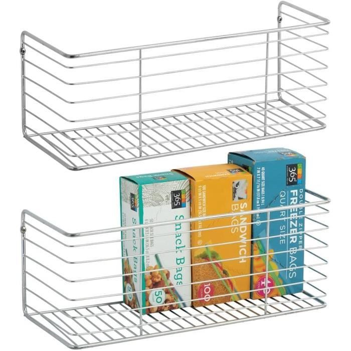 Ce joli rangement métallique de mDesign permet d'avoir une vue d'ensemble rapide sur le contenu. mDesign Étagère de rangement autoportante en métal à 3 niveaux mDesign Cikonielf panier de rangement pour placard Panier de rangement empilable en plastique grand... POLYVALENT : Outre son utilisation dans la cuisine, le bac de rangement trouve sa place dans d'autres pièces de la maison, rétablissant l'ordre en un clin d’œil à l'endroit de votre choix. Les caractéristiques du produit en détail panier métallique idéal pour un intérieur rangé idéal pour les aliments, produits de soin, etc. La corbeille métallique en fil de fer inoxydable permet également de ranger d'autres articles, tels que les produits de nettoyage, les cosmétiques ou les jouets. L'organiseur cuisine est facile d'entretien et se nettoie simplement à l'aide d'un chiffon humide. BONNE QUALITÉ : Fabriqué en fil métallique robuste et inoxydable, le rangement de cuisine est particulièrement résistant. Le panier de rangement peut être accroché au réfrigérateur ou au mur de cuisine grâce aux crochets inclus dans la livraison et faciles à monter. La boite peut être facilement retirée et transportée à tout moment. Support mural : ce long panier d'étagère a une ouverture supérieure accessible et est un excellent moyen de maximiser l'espace mural inutilisé n'importe où dans la maison ; les crochets se fixent au mur avec le matériel inclus, puis il suffit d'accrocher le panier et vous êtes prêt à partir. mDesign TIP - Utilisez plusieurs de ces... Panier Mural MDesign Corbeille Métallique Murale – Panier De Rangement Rangement Mural DIMENSIONS BIEN PENSÉES : Mesurant 40,6 cm x 15,2 cm x 15,2 cm, la corbeille métallique compacte est idéale comme organiseur de placard, sur le mur de la cuisine et dans le reste de la maison.