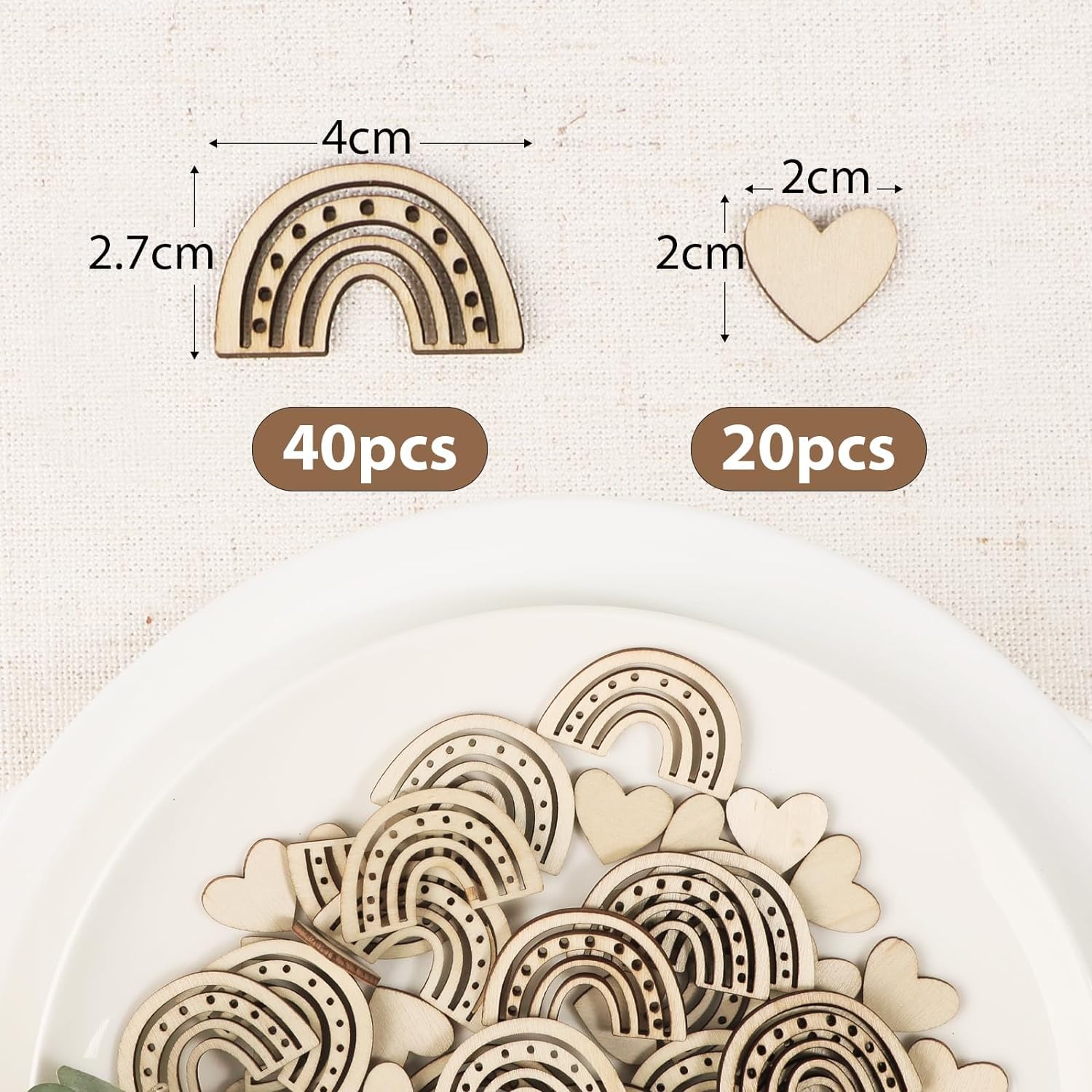 Spécifications du produit : Matériau:Bois Taille:Comme indiqué sur l'image Couleur:Couleur du bois Quantité d'emballage : 100* Copeaux de bois en forme de coeur 100*Puces de bois en forme d'arc-en-ciel Avertissement De Sûreté no 【Suffisante quantité】Vous recevrez un ensemble de belles décorations de baptême, comprenant 100 pièces de copeaux de bois arc-en-ciel, 100 pièces de copeaux de Coeur Bois. 【La personnalisation】Nos tranches de bois de baptême sont parfaites pour utiliser votre imagination et votre créativité, vous pouvez les peindre dans votre couleur préférée, qu'il s'agisse de tranches de bois arc-en-ciel ou de Coeur Bois, ce qui créera une atmosphère chaleureuse et joyeuse. Décoration Baptême Fille – La Boite à Dragées Cet ensemble de décorations de baptême peut être utilisé non seulement pour décorer la scène de la fête, mais aussi comme un beau souvenir ou un objet de collection, ou comme un cadeau idéal pour vos amis et votre famille. 【Léger et portable】Les copeaux de bois arc-en-ciel mesurent 4 x 2,7 cm et Cœur en Bois mesure 2 x 2 cm. Bois Déco De Poisson Baptême Décoration Confettis De Table Communion... Qu'ils soient placés sur la vaisselle ou éparpillés sur la table de banquet, ils peuvent ajouter une atmosphère unique à votre lieu de réunion. Les morceaux de bois sont légers et faciles à transporter et à placer. 【Suffisante quantité】Vous recevrez un ensemble de belles décorations de baptême, comprenant 100 pièces de copeaux de bois arc-en-ciel, 100 pièces de copeaux de Petit Coeur en Bois. Rendez votre fête plus attrayante. Description Pour décorer ta table de baptême avec style ! Ce lot comprend 50 confettis en forme de cœur et 50 en forme d'arc-en-ciel, tous en bois naturel. Dimensions : cœurs 2x2cm, arcs-en-ciel 2,7x4cm. Tu peux les réutiliser pour d'autres occasions comme une communion, une confirmation ou même une révélation de grossesse. Ils apportent une touche vintage et naturelle à ta déco... Marque Place 80Pcs Confettis En Bois Arc-En-Ciel Et Cœur Confettis Deco Anniversaire Baby Shower Decoration Idéal pour la cérémonie de baptême.