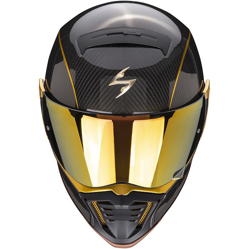 Le mécanisme magnétique breveté innovant, de petites dimensions, utilisé pour les mouvements de la visière, offre un fonctionnement silencieux inégalé, en gardant la ligne aérodynamique de la coque inchangée. Pare-soleil rétractable intégré. Le hublot de la visière a une forme qui permet d'utiliser tout type de lunettes de protection, son look captivant peut être souligné en montant la prise d'air incluse dans l'emballage. Le mécanisme magnétique breveté innovant, de petites dimensions, utilisé pour les mouvements de la visière, offre un fonctionnement silencieux inégalé, en gardant la ligne aérodynamique de la coque inchangée CASQUE SCORPION EXO-HX1 SOLID. Moto Expert vous présente le casque Scorpion EXO-HX1 SOLID: Ecran amovible afin de le transformer en casque cross. Visière ou P... Casque De Moto Casque EXO-HX1 CARBON SE SOLID SCORPION Noir Or - , Casque Casque Scorpion L'EXO-HX1 peut passer en mode tout-terrain en installant la visière et en retirant la visière, ou en modifiant son look 'street fighter' en retirant la visière et en installant les caches latéraux. Visière casque de moto Scorpion kdf-19 Exo-hx1 SHIELD maxvision ready Déflecteur de soufflage : performances anti-condensation améliorées. Système de ventilation : prises d'air avant et arrière réglables avec spoiler avant aérodynamique qui permet de réduire le risque de soulèvement, de créer une dépression et de maximiser le flux d'air à travers le casque. Fermeture de la mentonnière avec registre micrométrique