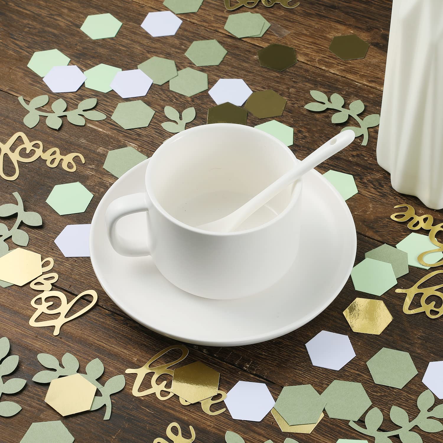Description du produit Rendez votre événement mémorable avec ces confettis de table à la fois beaux et polyvalents, créant l'atmosphère festive parfaite pour votre fête. Sa construction robuste permet une utilisation durable, ce qui en fait un ajout fiable à vos décorations Romantique et beau : la combinaison de feuilles vertes, de lettres d'amour et de confettis ronds est parfaite pour les mariages, les anniversaires ou les célébrations romantiques. Deco Mariage Confettis Vert Sauge & Or - Lot De 400 - Décoration Fête Fiançailles/mariage - Formes Variées Confettis De Table Anniversaire Besoin de décorations à parsemer sur votre table de mariage ? Découvrez nos confettis de table de toutes sortes et pétales de roses artificiels qui sublimeront votre centre de table le jour J! Ce que vous obtiendrez : vous recevrez 15 g de confettis de table de mariage, avec une variété de formes telles que des pois, des feuilles et des lettres... L'assortiment de couleurs et de formes ajoute de l'éclat et de l'intérêt à votre décoration de fête 100 Confettis de Table Mariage 'Greenery' Vert de Gris et Blanc Combinées avec des feuilles d'or et d'eucalyptus de sauge, ces couleurs sont charmantes et charmantes, ajoutant une touche haut de gamme à votre célébration Ces confettis créent une atmosphère charmante et charmante, qu'ils soient dispersés sur la table ou jetés dans l'air Large application : ces confettis polyvalents sont parfaits pour une variété d'occasions spéciales, y compris les mariages, les célébrations, les fêtes, les anniversaires, la Saint-Valentin, et plus encore.