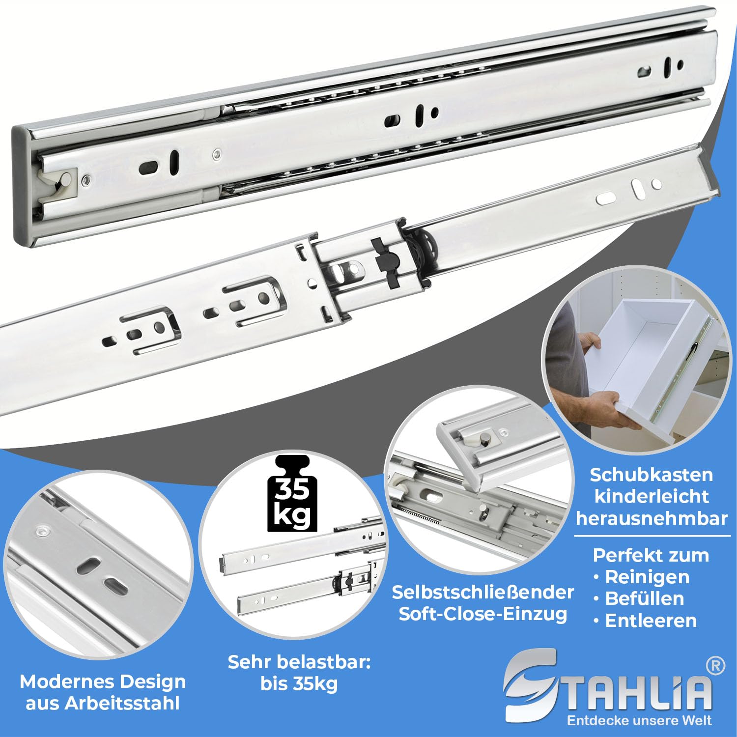 Lot de 2 rails (1 paire). GTV H45 - Lot de 2 glissières de tiroir, 45,3 x 550 mm, en acier galvanisé solide, système de rails Soft-Close, rail télescopique, guide-billes, charge... SHUHANG Paire de glissières de tiroir à fermeture douce et Capacité de charge : max., 45 kg par paire., Butée d’arrêt. Glissière Extension Totale Lot De 2 Glissières Télescopiques Pour Tiroir Extension Totale Hauteur Glissière De Tiroir Extension Totale Grande stabilité grâce à l'acier de travail laminé à froid, pas de déformation lors de l'utilisation. Matériau épais, robuste et durable, pas de déformation par flexion Grande stabilité grâce à l'acier de travail laminé à froid (ne se déforme pas à l'usage). Billes en acier trempé.