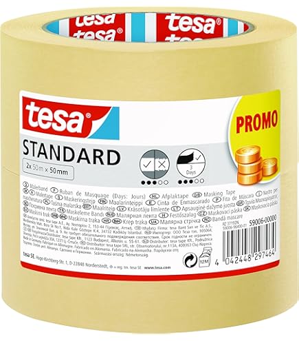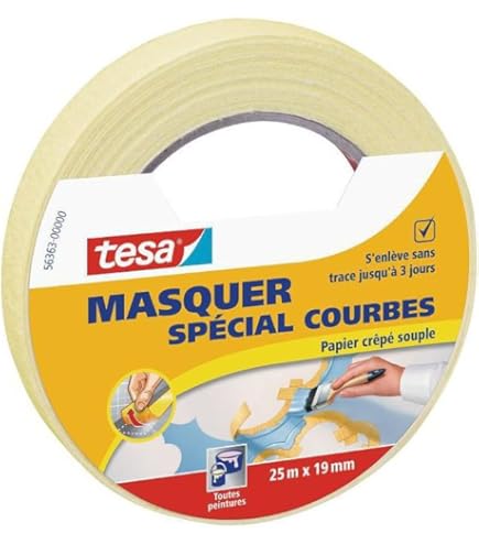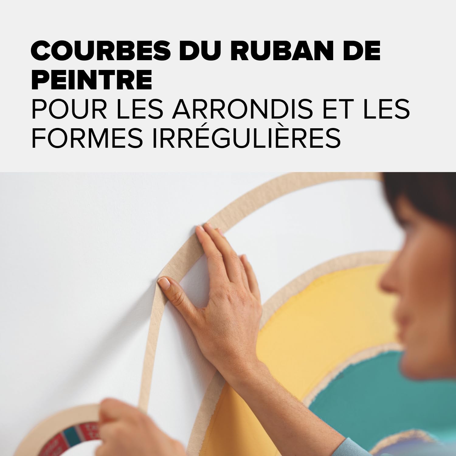Tesakrepp 4319 Lot De 20 Rubans Adhésifs De Masquage En Papier Crêpé Pour Les Courbes Et Les Arrondis Dans Les Travaux De Peinture - Marron - 12 Rouleaux De 50 M X 25 Mm