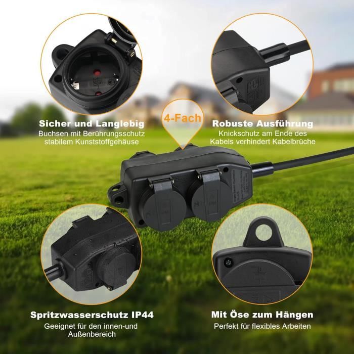 Rallonge de courant de 10 m avec 4 prises Schuko : cette multiprise dispose d'une rallonge de 10 m et de 4 prises avec protection IP44, convient pour l'extérieur. MAKING LIFE EASY : EMOS, une marque de Legrand, propose des produits électriques de haute qualité à des prix abordables pour un usage domestique et commercial. Étanche et sûr : avec la certification IP44 pour l'étanchéité et la résistance aux corps étrangers, cette multiprise offre une sécurité dans n'importe quel espace extérieur. Bloc Multiprises 6 Prises avec Interrupteur, Rallonge 3 m 250 V avec... Avec 250 V 16 A et une charge maximale de 3680 W. Rallonge de courant de 10 m avec 4 prises Schuko cette multiprise dispose d'une rallonge de 10 m et de 4 prises avec protection IP44, convient pour l'ext rieur. Avec 250 V ~/16 A et une charge maximale de 3680 W., (EMOS P14201) Rallonge Exterieure Parkside - Bloc Multiprise Pour Extérieur Multiprise Exterieur verschiedene Steckdosenleisten, IP44, Überspannungsschutz, 3-10 fach, USB C/A eB En outre, il offre une protection accrue contre les contacts. Avec 250 V~/16 A et une charge imale de 3680 W. (EMOS P14231) MATÉRIAU DE HAUTE QUALITÉ ET DURABLE Fabriquée en caoutchouc/néoprène durable et équipée d'un...