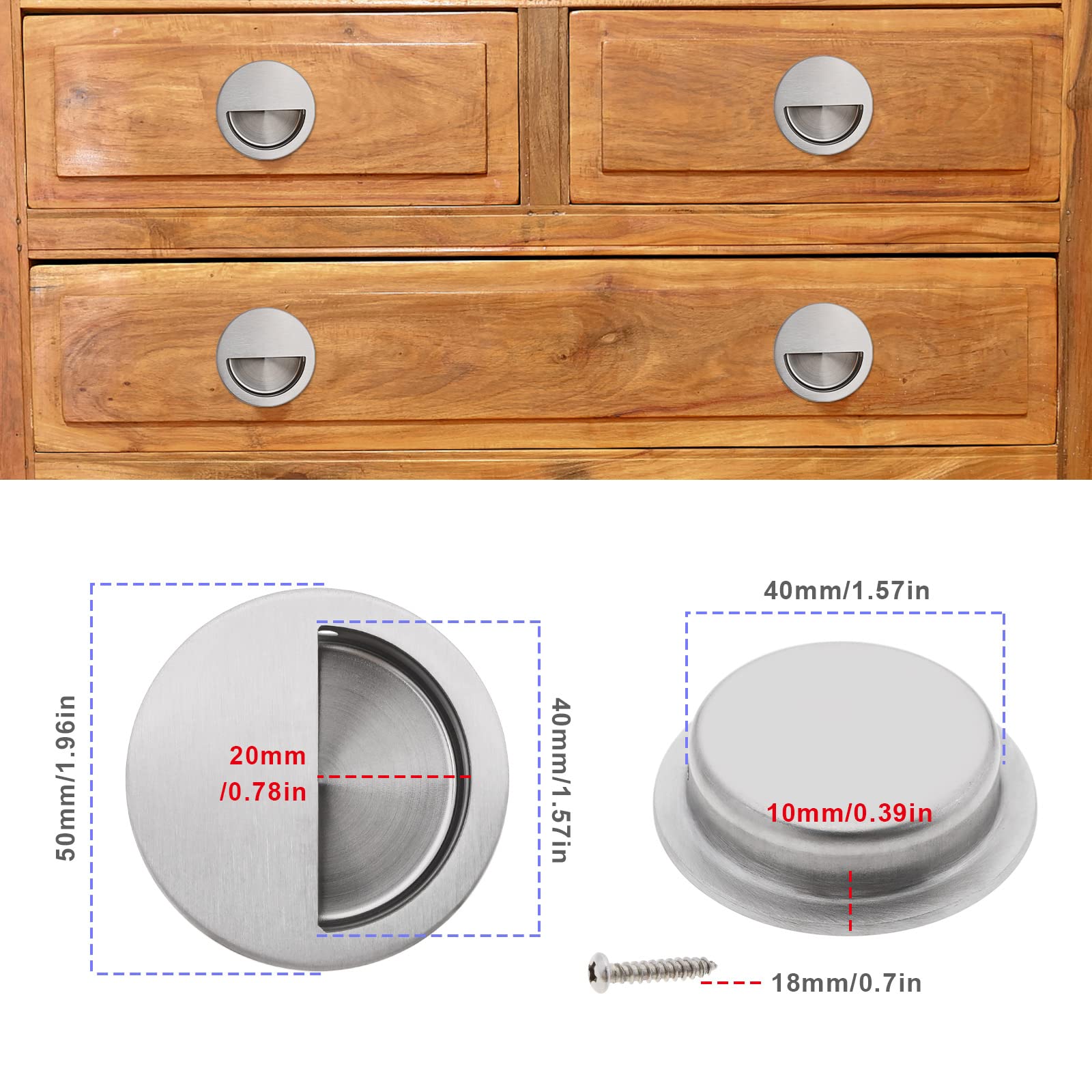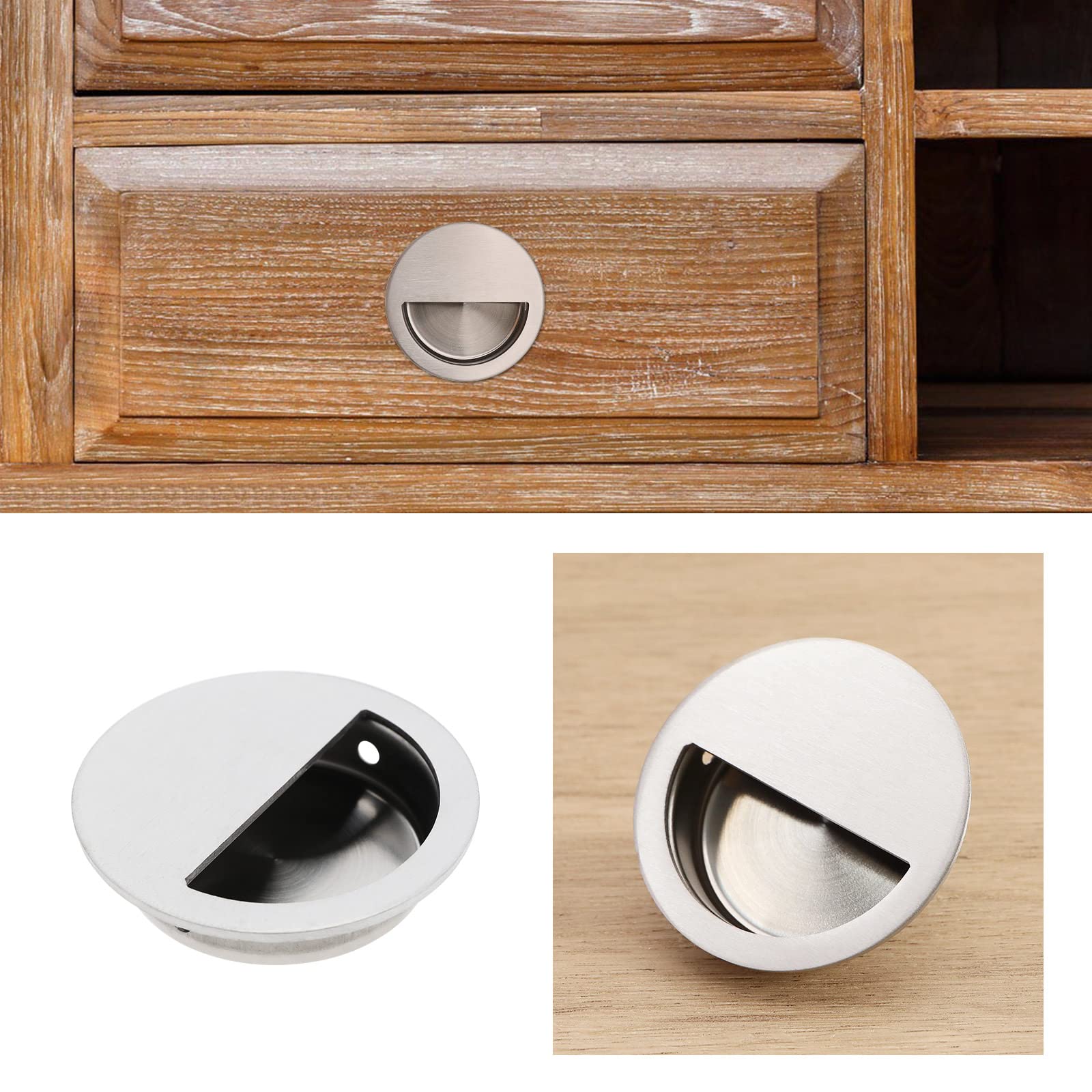 La poignée de traction affleurante est en acier inoxydable brossé satiné sur la surface, de sorte qu'il a une texture avancée, et sa structure est stable, assez dure, antirouille, fiable et durable, a une longue durée de vie. MPR - Poignées rabattables encastrable -avec rappel à ressort technopolymère de ELESA | MISUMI Le diamètre de la poignée est de 50 mm, le diamètre d'ouverture est de 40 mm, la profondeur est de 10 mm, et la taille de la vis est de 17 mm. Poignee Porte Coulissante Lot De 6 Poignées De Porte Coulissante Encastrées En Acier Poignée Encastrée Porte Coulissante Le design rond est très délicat et beau, adapté à différents styles de décoration. Poignées De Porte Coulissante Encastrées En Acier Inoxydable Avec Vis... Cette poignée ronde peut s'adapter à la plupart des meubles tels que les portes coulissantes, les titres, les armoires en bois. La poignée de porte coulissante encastrée avec bords polis assure une traction sûre avec les doigts. Le paquet contient 6 poignées en acier inoxydable et 12 vis.