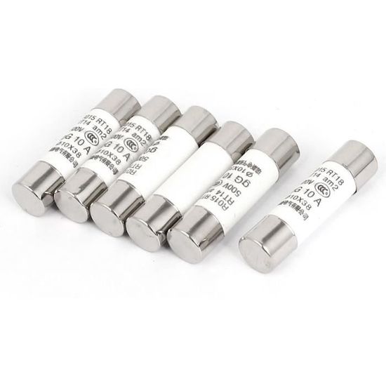 1., Caractéristiques: Tension nominale AC 500V, courant nominal 10 A, dimension 10 x 38mm., 2., Principalement employé pour protéger le circuit électrique contre les surcharges et les courts-circuits. Vérifiez la dimension d'origine de votre fusible avant d'acheter: diamètre du corps, longueur du corps, courant nominal, tension nominale. Voir plus de détails Caractéristiques Courant nominal: 10A; Modèle: RO15 (RT18 RT14) Sourcing Map 9Pcs AC 500V 10A RO15 RT18 RT14 10x38mm Coup Vérifiez la dimension d'origine de votre fusible avant d'acheter: diamètre du corps, longueur du corps, courant nominal, tension nominale. Tube Cylindrique En Céramique Fusible Lien, Rt18–32 (Ro15), 10 * 38 Mm, 16A 500V, Ce, Lot De 20... ISIGMA Fusibile 5Pcs 10 * 38 Fusibile ceramico a Colpo rapido 10x38mm Remarque: veuillez couper l'alimentation avant votre remplacement. Nom du produit: Fusible en céramique; Tension nominale: AC 500V