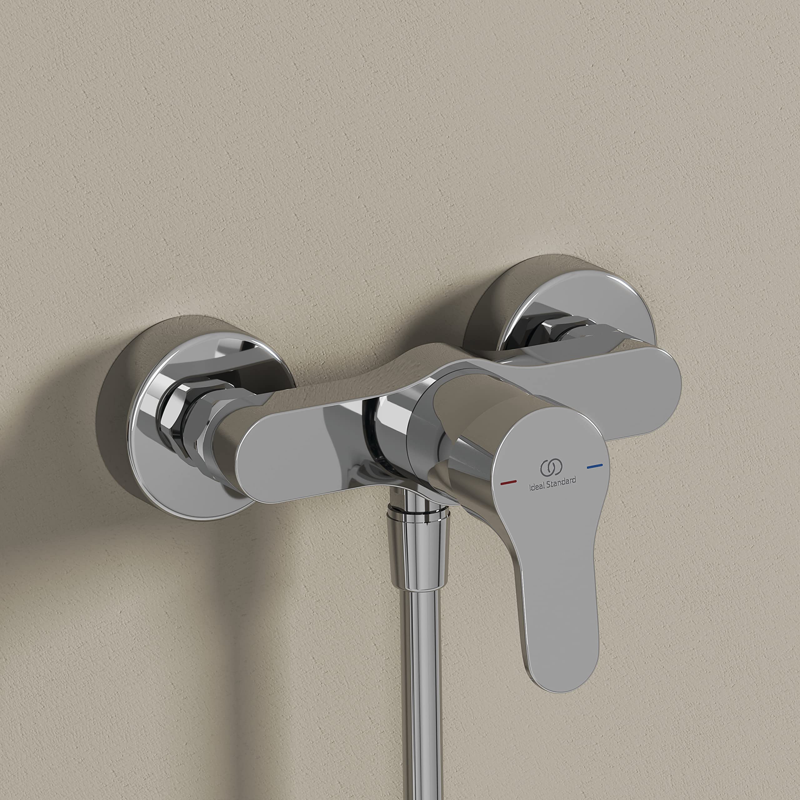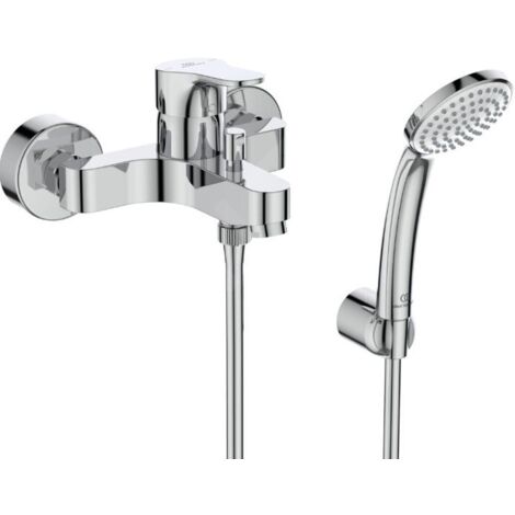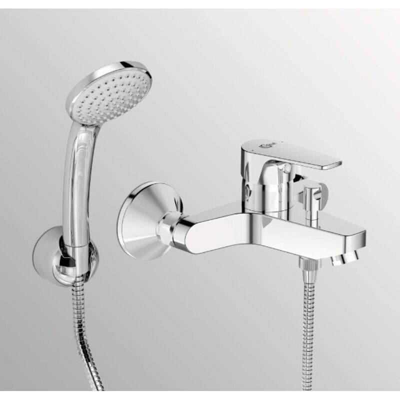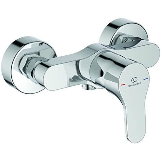 Mitigeur bain/douche 1 voie en laiton chromé - Ideal Standard Cerabase Mitigeur de baignoire avec inverseur couleur : chrome matériau : laiton dimensions : 194 x 150 x 47 mm bec fixe 156 mm FirmaFlow cartouche céramique de 38 mm EasyFix système de fixation rapide et simple finition SmartShine - pour un nettoyage plus facile avec limiteur de température maximale de l’eau inverseur baignoire/douche flexible G 3/8 sans accessoires Mitigeur mural de baignoire finition : chrome matériau : laiton caches métalliques rondes 70 mm bec fixe 163 - 168 mm entraxe 150 mm installation murale commande à levier mousseur avec inverseur douche/baignoire raccords S à faible niveau de bruit FirmaFlow cartouche en céramique finition SmartShine - pour un nettoyage plus facile avec équipement pour éviter le refoulement d'eau... Bec de distribution fixe et inverseur Mitigeur mural de baignoire. finition : chrome; matériau : laiton; caches métalliques rondes 70 mm; bec fixe 163 - 168 mm; entraxe 150 mm... Robinet Baignoire Ideal Standard BC676AA Alpha Mitigeur De Douche Externe Avec Accessoires, Chromé Mitigeur Bain Douche Mitigeur extérieur pour baignoire ou douche avec accessoires, doté d'une bouche de distribution fixe et d'un déviateur. Raccords en S de 1/2, réglables pour entraxe de 150 ± 23 mm et cartouche FirmaFlow® de 38 mm avec système EKO.