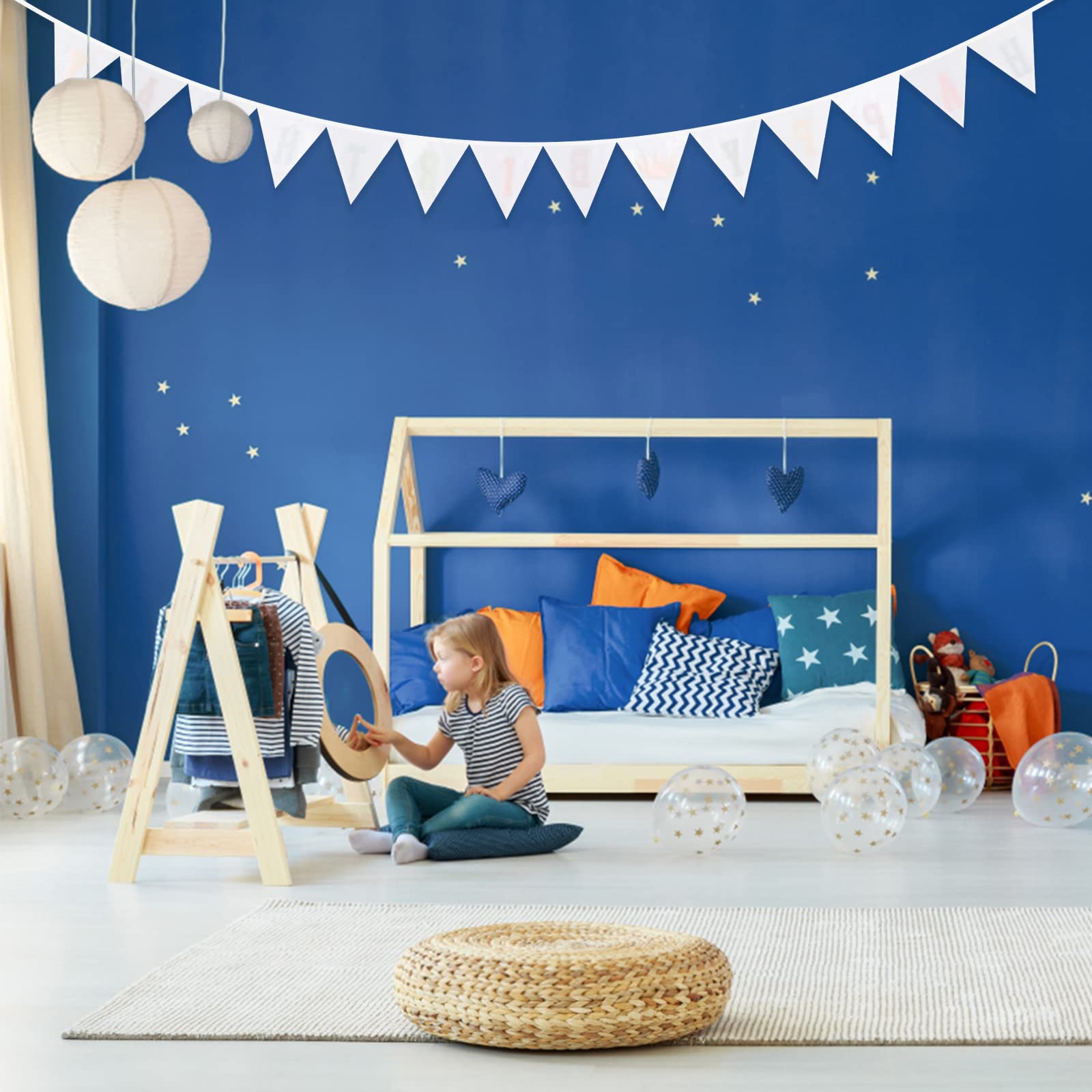 Les lettres du Happy Birthday sont en feutre et collées. Utilisation polyvalente : la bannière n'est pas seulement adaptée pour les fêtes d'anniversaire, mais peut également être utilisée comme très belle décoration de chambre d'enfant. Drapeaux Triangle Double Face Guirlande De Fanions G2PLUS Multicolore Fanions]Guirlande comprend 42 drapeaux d'angle avec un seul côté rayé Design. Les couleurs du drapeau triangulaire sont excellentes, avec un total de cinq couleurs différentes à choisir Vous pouvez le retourner et avoir une belle guirlande de fanions pour égayer votre jardin d'été. Guirlande Fanion Fait Main G2PLUS 190CM Guirlande De Fanions,Fanions Bannière,Guirlande En Tissu Guirlande Fanion En Tissu 【Taille】Guirlande de fanions en tissu de 3,3 m avec 14 pièces., Fanions de 17 cm., Env. 【Double version】Le fanion Happy Birthday est double face, mais il a « Happy Birthday » seulement sur un côté. 0,5 mètre de chaque côté vous permet de les nouer facilement. Le pack comprend 4 guirlandes de 3m chacune (12m au total), donc t'as de quoi décorer un mur entier, une fenêtre ou même le plafond. Parfaite pour les...
