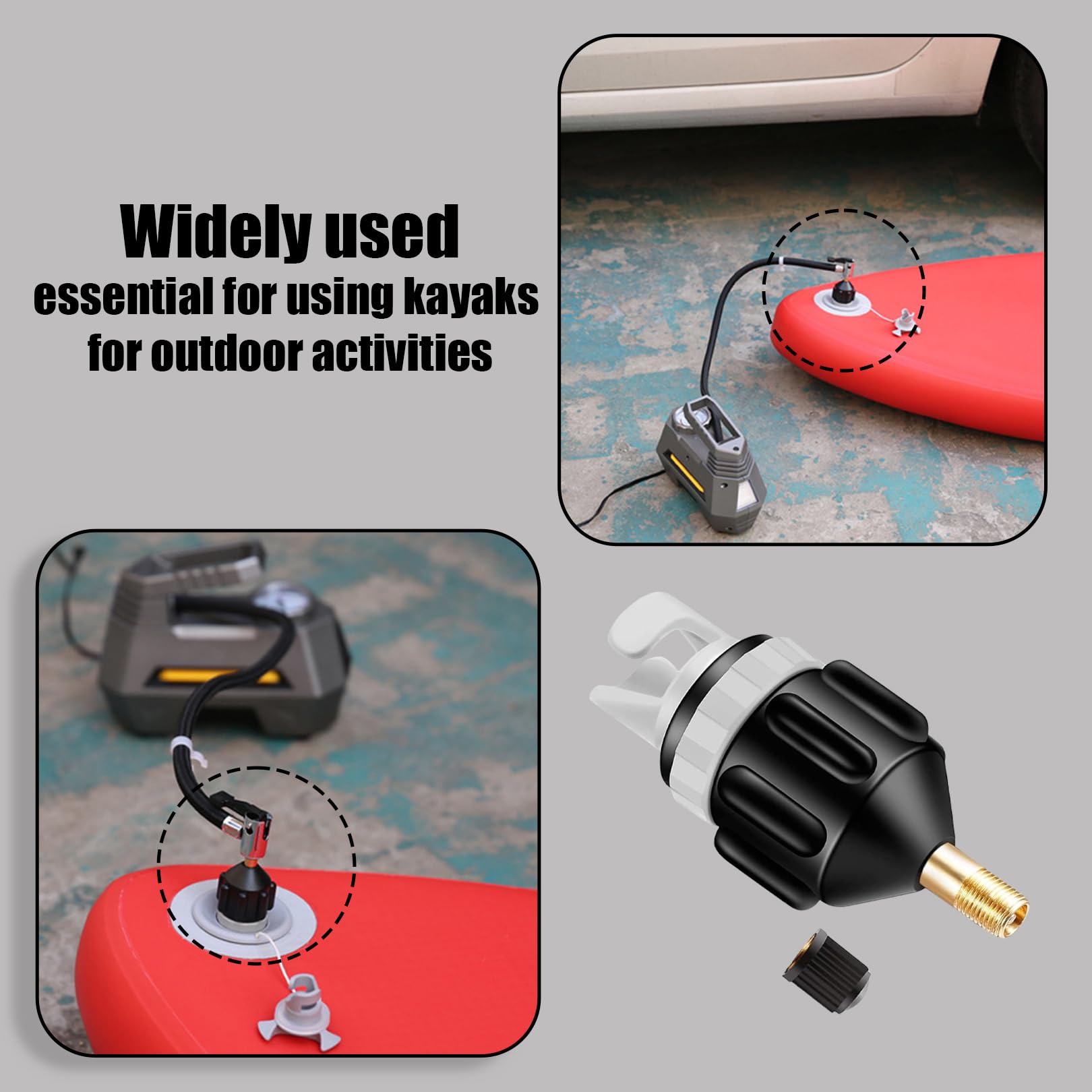 Double compatibilité : la tête de changement de valve d'air pour kayak assure la compatibilité avec une gamme d'équipements gonflables, y compris les kayaks et les lits gonflables. Compact et portable : ces adaptateurs de valve sont compacts et faciles à transporter, s'intègrent parfaitement dans votre équipement de kayak ou de camping. Cable de lámpara con interruptor de botón, enchufe de cable negro En stock Gonfleur électrique 12v MB 80 pour vos kayaks, bouées tractées et autres engins de...suite... Article vendu sur internet et en magasin. Prix : 30,00... Basculez entre différents objets gonflables sans effort, améliorant la commodité de vos activités de plein air sans avoir besoin de plusieurs adaptateurs. Adaptateur Embout Gonfleur Paddle Adaptateur De Pompe Sup Pour Bateau Gonflable, Convertisseur De Pompe Gonfleur Paddle Electrique Pas besoin de vous soucier de trouver le bon ajustement. Utilisation polyvalente : conçus pour le kayak et les lits gonflables, ces adaptateurs prouvent leur polyvalence. Durabilité robuste : conçues pour être résistantes, ces têtes de conversion de valve sont conçues pour résister aux exigences du kayak et du gonflage des lits. Sollbry Lot de 2 adaptateurs de pompe électrique pour bateau...