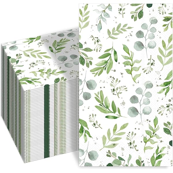 Papier Lot de 2 : 50 serviettes double épaisseur. Serviettes de qualité : chaque serviette en papier est double épaisseur, elles sont très robustes, super absorbantes et douces au toucher, gardent votre table de salle à manger propre et garantissent une expérience de repas confortable. Il peut parfaitement être combiné avec des assiettes et également des serviettes pour les loisirs créatifs. WRAPAHOLIC Greenery Lot de 50 gobelets en papier jetables en Design unique : créatif et magnifiquement conçu avec des feuilles d'eucalyptus aquarelles vertes sur papier blanc. WRAPAHOLIC Lot De 25 Serviettes De Cocktail En Papier D Lot de 2 : Créativement et magnifiquement conçu avec des feuilles d'eucalyptus aquarelle verdure sur du papier blanc, ce qui est une aide pratique pour votre mariage, anniversaire, usage quotidien ou décoration de fête. Taille pliée : chaque serviette mesure 10,9 x 20,1 cm et est idéale pour les dîners et les déjeuners célébrant un mariage, un anniversaire. Lot de 2 : Extra robuste, super absorbant et doux au toucher, garde votre table de salle à manger propre et garantir une expérience de repas confortable. Kate Aspen Décorations de fête vert sauge, serviettes de ariage florales d'eucalyptus...