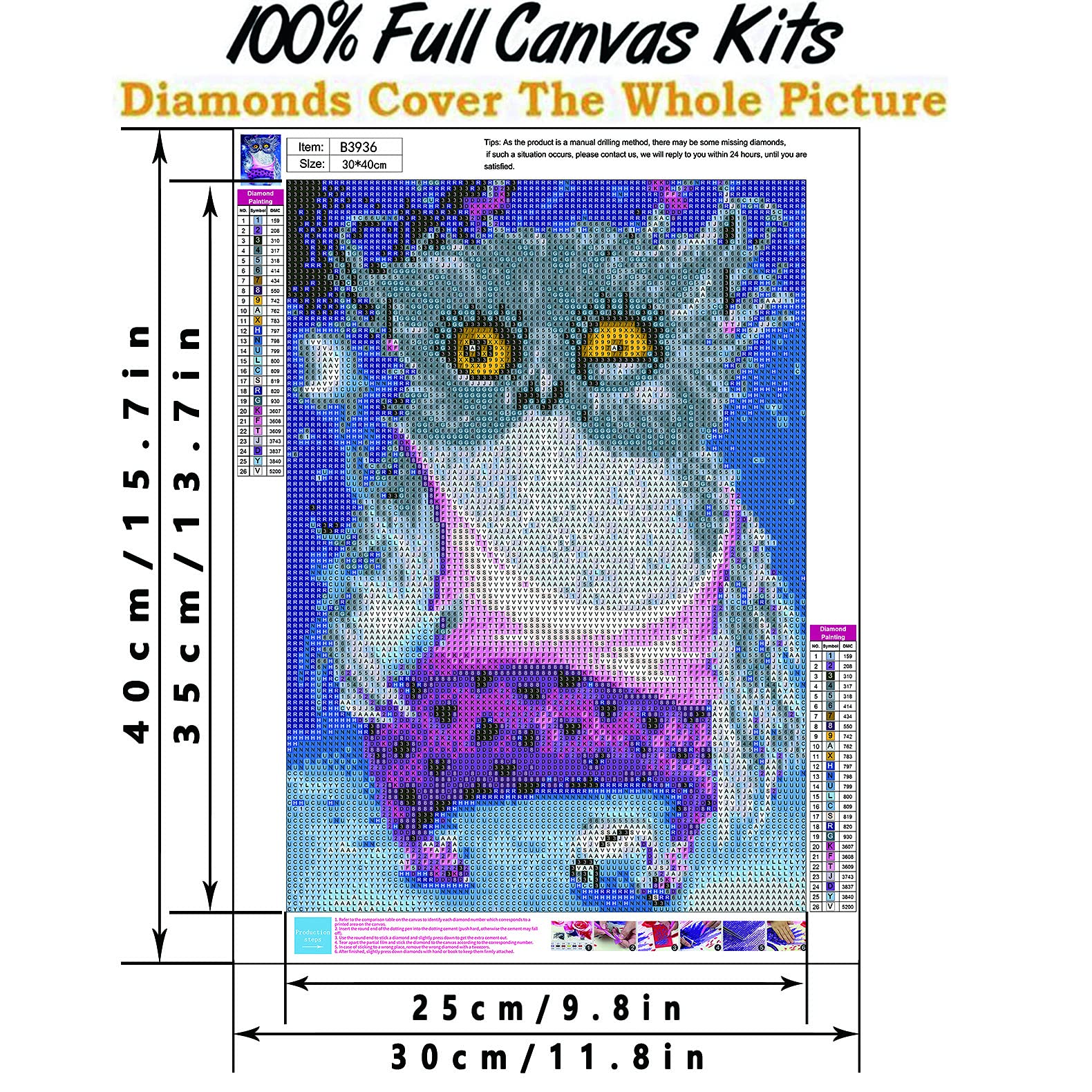 Excellent cadeau pour Noël, anniversaire, mariage ou pendaison de crémaillère À propos du kit de peinture diamant WOWDECOR Les kits complets de peinture diamant WOWDECOR sont des activités simples et agréables pour les amateurs et les peintres, jeunes et âgés. Art Therapy - Parfait pour la relaxation, les loisirs et l'éducation. · Dimensions de la toile : 30 x 40 cm. · Matériau des strass Basée sur le même concept que les mosaïques et la peinture par numéro, la peinture diamant utilise de minuscules facettes de strass en résine « ressemblant à des diamants » pour créer des designs colorés et des motifs finis qui brillent. - Convient aux adultes et aux enfants de plus de 4 ans., Instructions : 1., Ouvrez l'emballage et retirez la toile, les diamants et les outils., 2., Vérifiez les numéros de code des diamants et des symboles correspondants., 3., Placez les diamants dans le plateau en plastique. Recherchez des vendeurs contrefaits avec des produits de qualité inférieure Profitez des heures d'artiste dans vos œuvres d'art et finissez par un travail étincelant Détails : - Contenu de l'emballage : toile, perles de strass colorées taillées en diamant, plateau en plastique et stylo pour appliquer les perles de strass sur la toile. Diamond Painting Complet, WOWDECOR Coloré Hibou Aigle Animaux Diamant Kit complet, accessoires et outils inclus Les diamants couvrent l'ensemble de la peinture. Ensuite, coupez les pièces pour obtenir le meilleur effet global possible., 3., La taille de la toile est mesurée manuellement, il peut y avoir un écart de 1 à 2 cm., Conseils : 1., Essayez de laisser les enfants à l'endroit où les diamants sont facilement accessibles., Éviter toute ingestion., 2., La peinture doit être maintenue propre. WOWDECOR Kit De Broderie Diamant 5D Motif Hibou Les kits de peinture diamant WOWDECOR sont des activités faciles et agréables pour les artisans et les fans de peinture, jeunes et âgés. Basée sur le même concept que les mosaïques et la peinture par numéro, la peinture diamant utilise de minuscules facettes en résine « semblable au diamant » pour créer des motifs colorés pour des... Dimensions de la toile : 30 x 40 cm., Cadre non inclus. Précautions d'emploi : 1., Si vous ne savez pas quelle couleur utiliser, veuillez vous référer au nuancier., 2., Lorsque vous avez terminé, le motif des perles de strass à l'intérieur de la ligne de coupe doit être complété avec un point.