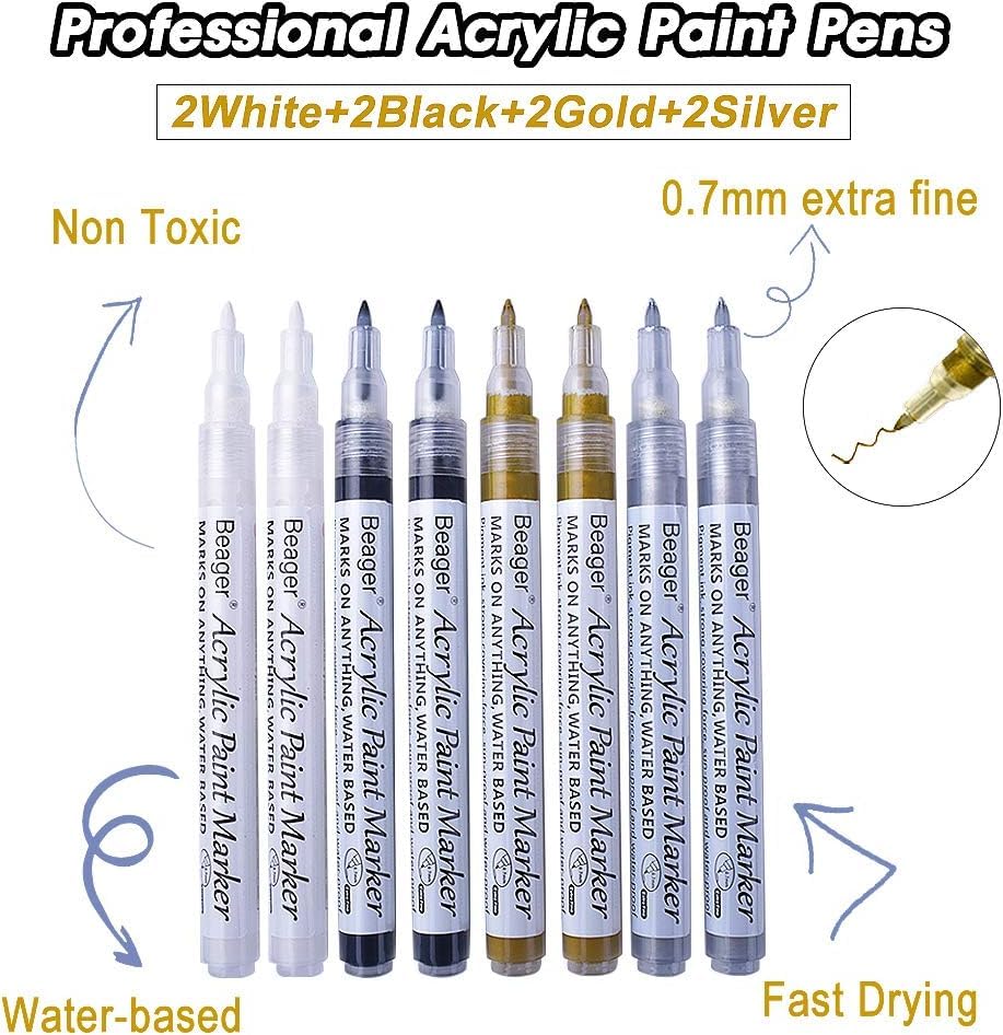 Pour plus de confort lors de l'utilisation L'encre a une bonne durabilité et peut être utilisée pendant longtemps 2 stylos acryliques imperméables (dorés). Pour plus de confort lors de l'utilisation, Cadeau pratique avec ces ensembles de crayons de peinture acrylique, vous pouvez laisser libre cours votre imagination pour cr er de l'art sur une vari t d'objets. ✅ Si vous n'êtes pas satisfait de nos produits, veuillez nous contacter et nous vous offrirons la meilleure solution dans les 24 heures. La pointe de 0,7 mm assure un débit d'encre uniforme et un contrôle précis, idéal pour dessiner des lignes fines, ce qui vous permet d'ajouter plus de détails à vos projets artistiques. Matériaux de qualité supérieure : ces marqueurs acryliques utilisent de l'encre acrylique de qualité supérieure qui sèche rapidement et ne se décolore pas. C'est pourquoi ces marqueurs de peinture acrylique sont un cadeau idéal et pratique pour les aider à exprimer pleinement leur créativité Une pointe plus fine permet un dessin plus pr cis. Que vous peigniez des détails avec eux ou remplissez de grandes surfaces, vous obtenez toujours de bonnes performances Conseils : La couleur de l'article peut varier légèrement de celle de la photo en fonction des paramètres d'affichage et de luminosité de votre ordinateur. Une pointe plus fine permet un dessin plus précis. Cadeau pratique : avec ces ensembles de crayons de peinture acrylique, vous pouvez laisser libre cours à votre imagination pour créer de l'art sur une variété d'objets. Le corps du stylo est tr s transparent, ce qui permet de lire facilement l' tat de l'encre tout moment. Choix fiable : il est respectueux de l'environnement et entièrement adapté à la famille. Idéal pour les artistes et les étudiants en art, les adolescents et les adultes. Également un excellent cadeau de Noël pour vos amis pour envoyer votre amour Stylo Acrylique Lot De 8 Marqueurs Acryliques Imperméables - Noir Blanc Or Marqueurs à Dessin Avec l'encre à haute couverture, vous pouvez facilement créer des œuvres d'art sur n'importe quel objet et les garder vives et belles pendant longtemps Nous vous proposons un choix varié d 2 stylos acryliques résistants à l'eau (blancs). MOSTFUN Lot de 8 marqueurs acryliques de 0,7 mm Bien agiter avant utilisation pour mélanger la couleur, puis appuyer plusieurs fois verticalement sur la pointe jusqu'à ce que l'encre s'écoule. Caractéristiques du produit : Nom : stylos acryliques imperméables Matériau : peinture acrylique Couleur : noir, blanc, or, argent. Vous pouvez facilement utiliser ces crayons de peinture vivants sur n'importe quelle surface comme la pierre, le bois pour bricoler, le métal, le plastique, le...