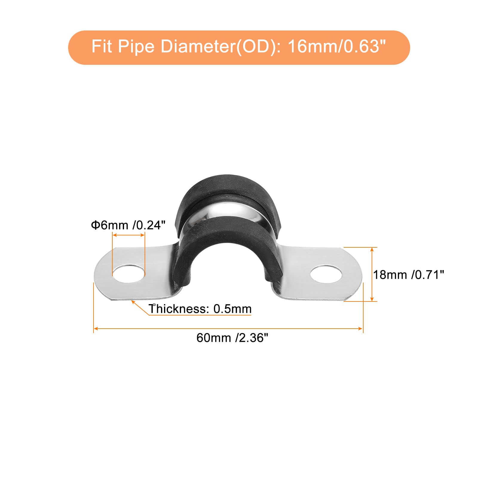 Sangle Inox Sourcing Map 16pcs 42mm Collier De Serrage Caoutchouc Clips Grillage Rigide Colliers de serrage à 2 trous, faciles à installer et à enlever. Les colliers de serrage en caoutchouc sont largement utilisés pour fixer les câbles, les fils, les canalisations d'eau, de carburant, de pétrole et de gaz dans le pétrole, l'industrie chimique, les ménages, la métallurgie, les navires et les systèmes hydrauliques électriques, intérieurs et extérieurs. Colliers de serrage en caoutchouc RSGU 6-100 mm DIN 3016 (diamètre 6 mm Collier de tuyau en forme de U] - Collier en forme de U pour tuyau, idéal pour les tuyaux, l'enveloppement du coussinet en caoutchouc réduit efficacement l'écrasement, l'abrasion et les vibrations, il est flexible et présente une bonne résistance à l'usure, ce qui peut bien protéger le tube et maintenir le collier en place de manière ... [Attache de tuyau U-Formé] - Sangle U-Formé pour tuyau... Placez-le à l'endroit souhaité et installez-le avec des vis, ce qui permet de fixer facilement le tuyau sur différentes surfaces telles que les murs, le bois ou les plafonds. [Large application] - Les sangles en caoutchouc pour tuyaux sont largement utilisées pour fixer des câbles, des fils, des pipelines d'eau, de carburant, d'huile et de gaz dans les industries pétrolière, chimique, domestique, métallurgique, navale et les systèmes hydrauliques de puissance, à l'intérieur et à l'extérieur. Veuillez choisir la taille correcte de pince en fonction du diamètre extérieur du tube. [Matériau en métal] - La pince de câble est fabriquée en acier inoxydable 304 de bonne résistance avec une finition polie et un coussin en caoutchouc, durable et stable, ne rouille pas facilement et ne se corrode pas dans des environnements difficiles, et peut être utilisée pendant longtemps sans déformation. Spécification :Matériau : acier inoxydable 304 ; Caoutchouctraiter de surface : polissageÉpaisseur : 0,5 mmDia du trou monté : 6mm/0,24Diamètre du tuyau d'ajustement (OD) : 16mm/0,63Taille totale : 60x18mm/2,36x0,71(L*W)Contenu de l'emballage :12 pcs x sangle de tuyau en caoutchouc FindTheDeal : découvrez sans effort les offres de shopping sur FindTheDeal. Veuillez, en fonction du diamètre extérieur du tube, choisir la bonne taille de collier de serrage.
