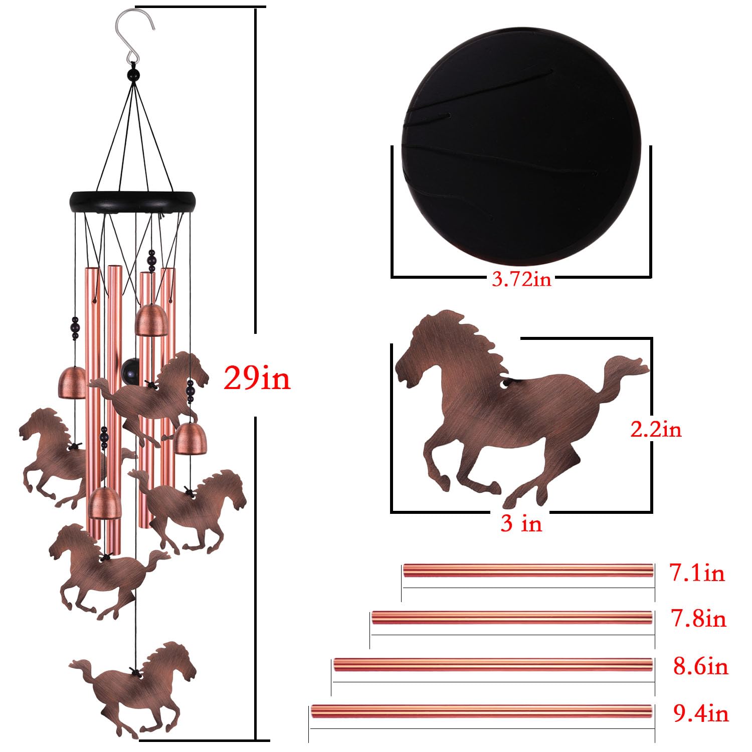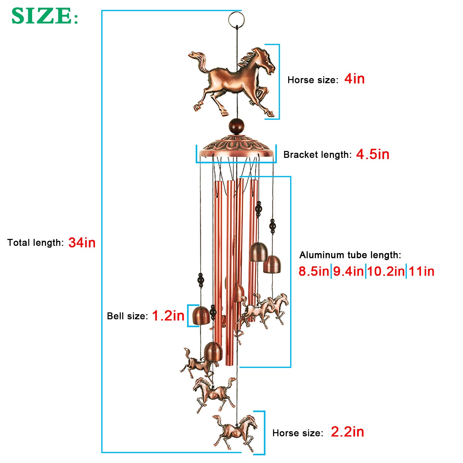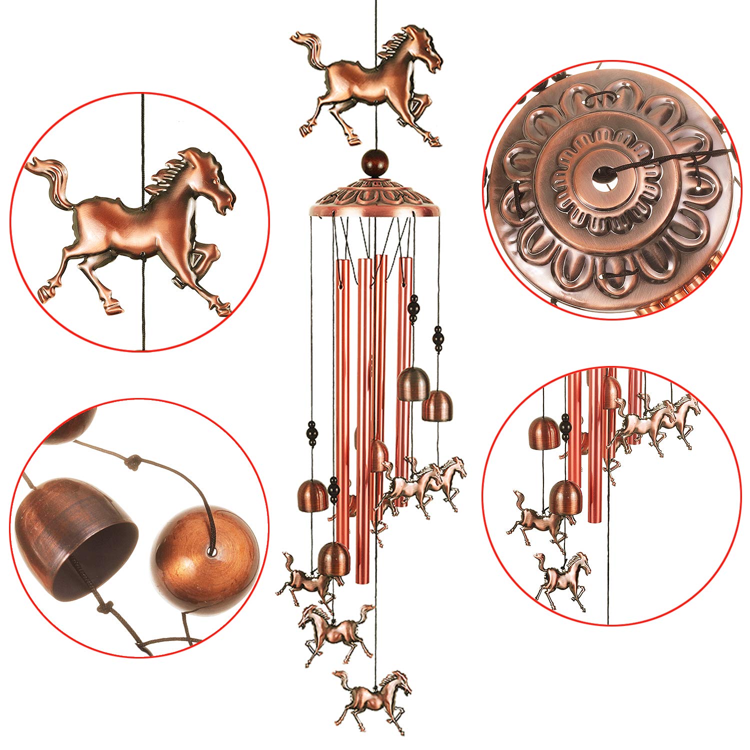 Cadeau parfait : le carillon YMXBL est non seulement un bon choix pour la décoration intérieure et extérieure, mais aussi un bon cadeau pour maman, famille, amis, parents, amoureux, grand-mère, voisins, et connaissances. Peut vous aider à soulager le stress, à vous détendre. Peut exprimer votre préoccupation et vos bons vœux. Les carillons à vent sont une sorte de mascotte, symbolisant la chance. Cadeau idéal pour un anniversaire, la fête des mères, Noël, la Saint-Valentin, une pendaison de crémaillère, un anniversaire. Contenu : 1 carillon à vent en forme de cheval. Symbolisme culturel et design : les carillons éoliens d'extérieur pour chevaux présentent des nuages de bon augure et un thème rouge et or, fusionnant l'esthétique chinoise avec un décor fonctionnel pour améliorer les espaces extérieurs tout en créant une atmosphère festive qui résonne avec l'année du cheval, parfait pour les... Décoration délicate pour l'intérieur et l'extérieur. Merveilleux mélodie du vent : le temps de résonance des carillons en aluminium est plus long que les autres, apportant une beauté durable de la musique. Et accrocher un carillon à vent à l'intérieur et à l'extérieur peut bénir la sécurité, la santé et le bonheur de la famille. Il peut également être utilisé pour commémorer des personnes spéciales. Décoration idéale pour votre jardin, cour, terrasse, balcon, fenêtre, cour, maison de plage, allée, terrasse, pelouse, arbre, couloir, chambre, salon, salle de soleil, maison. Carillons éoliens D'extérieur Pour Chevaux - Ornement En Acier Il symbolise également la richesse. Du crochet au bas de l'unité mesure environ 91,4 cm. Avec 1 grand cheval en métal, 1 couvercle rond en métal, 4 tubes creux en aluminium, 6 cloches et 6 petits chevaux., Du crochet au bas. Grand carillon éolien en aluminium pour l'extérieur, carillon Parfait comme décoration idéale pour le jardin, la cour, le balcon, la fenêtre, la cour, la pelouse, les arbres, la maison de plage, l'allée, la terrasse, le couloir, la chambre, le salon, la véranda, la maison et partout où vous souhaitez ajouter de belles mélodies à votre environnement.