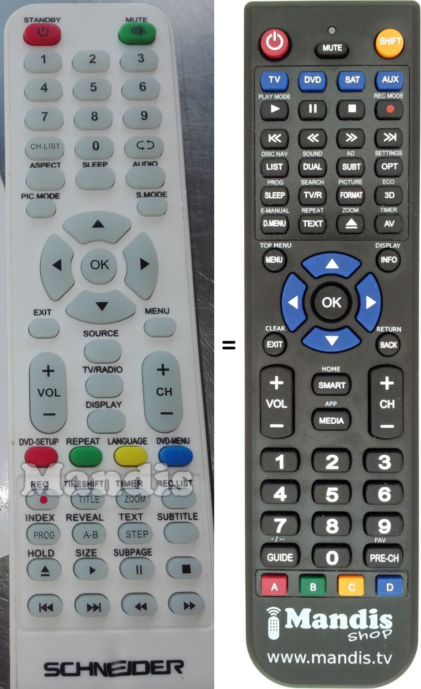 La télécommande TV Schneider de remplacement est exactement la même que la télécommande d'origine. Les boutons sont doux et faciles à appuyer et répondent de manière très sensible, les boutons sont clairement étiquetés., éloigné. La télécommande est de bonne qualité, très durable et peut être utilisée pendant une longue période. Telecommande Orange Télécommande De Remplacement Pour TV Schneider LD32-SCA05HB LD32-SCN06HB LD40-SCN06FHB LED32-SCP200H LED32-SCPX200H LED43-SCP200K Télécommande Universelle Lg Télécommande Schneider Tv : top 10 en décembre 2025 Remplacement direct pour la télécommande originale Aucun code d'installation requise. Il suffit d'insérer les piles et commencer a utiliser. Capable d'accéder... Aucun ajustement requis: pas de programmation ou de configuration, facile à utiliser. Aazon.es: schneider ando tv S'il y a un problème avec notre produit ou service, n'hésitez pas à nous contacter. La distance de transmission est plus éloignée. Rechercher une télécommande SCHNEIDER