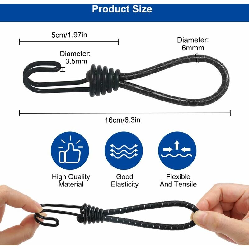 Tendeurs courts avec crochets Utilisez-les pour sécuriser les bâches, les tentes ou tout autre article qui doit être attaché Tendeurs élastiques 32 cm avec crochet pour la fixation des baches (lot Vendu par Leroy Merlin (10) · Livraison offerte (1 498) · Prix 1.09 EUR - 2198.56 EUR. EUR. -. EUR. Réinitialiser Appliquer · Note des clients 4 et plus / 3 et... Polyvalent pour une utilisation en extérieur : le lot de 18 tendeurs est polyvalent et adapté à une large gamme d'activités de plein air. Tendeur Bache WMZOBH Lot De 50 Tendeurs élastiques Avec Crochets – 25,4 Cm Avec Crochets – Crochets De Bâche Courts – Petite Corde élastique (blanc Bache Piscine Elastique Tendeurs de 25,4 cm avec crochets : nos tendeurs courts avec crochets sont conçus pour une utilisation intensive, assurant résistance et élasticité. Le design compact garantit qu'ils prennent un minimum d'espace, ce qui les rend parfaits pour les applications en déplacement Construction robuste : fabriqués à partir de matériaux de qualité, ces tendeurs courts avec crochets sont conçus pour durer; le noyau élastique offre une forte tension, tandis que le revêtement extérieur protège contre l'usure 28 pièces Tendeurs Elastique avec Crochets Tendeur Bache Crochet...