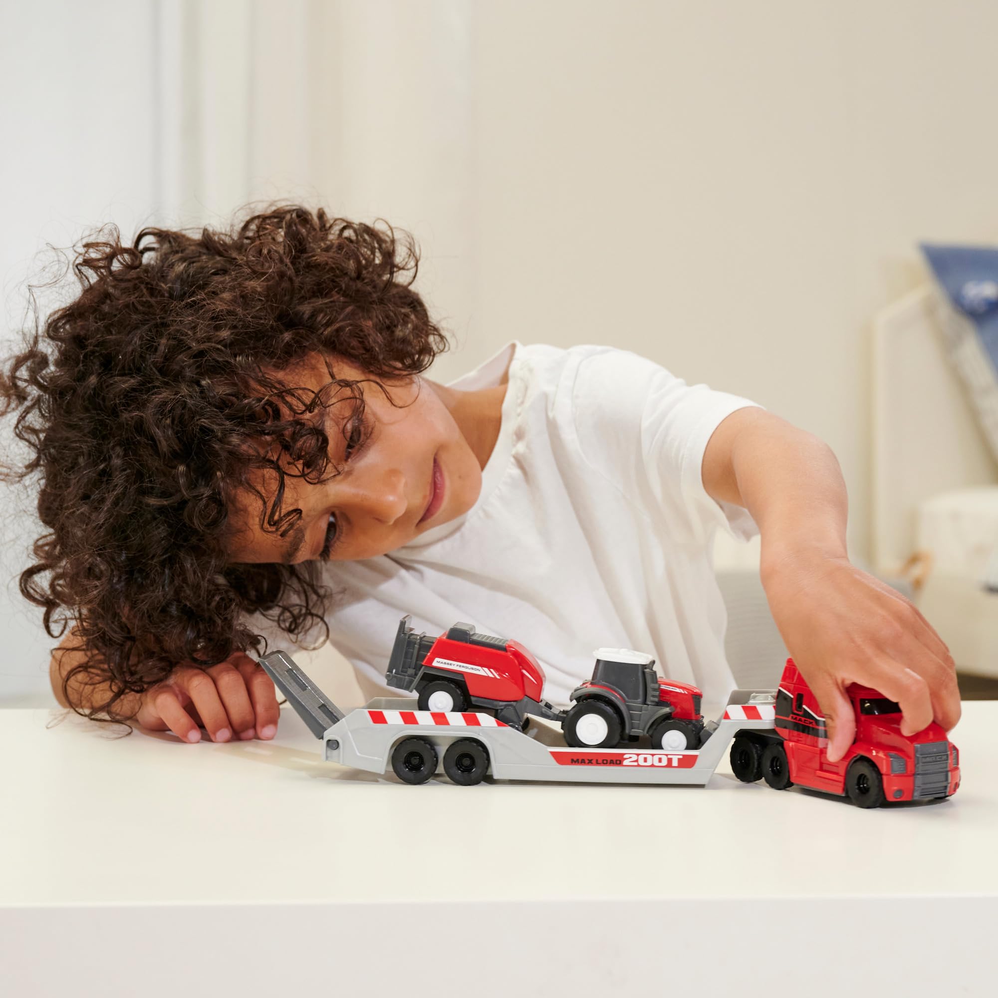 La construction robuste et les finitions soignées font de ces voitures jouets un cadeau parfait et un must absolu pour chaque ferme. » Avertissement De Sûreté ne conviennent pas aux enfants de moins de 3 ans. Le tracteur à roue libre amène les balles de foin fournies directement dans le poulailler jusqu'aux vaches. Le pare-chocs avant mobile permet au tracteur Fendt (avec licence Fendt officielle) de recharger les balles de foin et de les faire rechargés dans la remorque La remorque peut être installée et déconnectée de manière flexible. La presse à balles peut être couplée au tracteur, qui peut être monté sur la remorque via la rampe rabattable et y être placé. Dickie Toys entraîne ainsi la motricité et fait également les premiers pas vers l'éducation à la circulation. Description du produit « Un parc de véhicules propre pour la ferme. Design réaliste - En tant que modèles de voitures sous licence officielle avec des détails fidèles à l'original, le tracteur jouet Fendt et le camion MACK Anthem ressemblent aux vraies machines agricoles. Mais ce n'est pas seulement le design des voitures qui convainc – grâce à la fonction roue libre et aux détails réalistes, les filles et les garçons à partir de 3 ans peuvent inventer et reproduire des histoires créatives de la ferme avec ce kit de véhicules. Dcke Toys Fendt Mcro Farmer Traktor mt Anhänger 18cm - Mehrere... Petits racers, grands coureurs : nous avons toujours un objectif en tête : faire sourire les enfants. Tracteur Fendt Dickie Toys Fendt Micro Team 9 Cm - Ensemble De Tracteurs Avec Remo Fendt Original Selection Aleatoire Pour Enfants Amz B0b34t Camper Van Des modèles fidèles pour d'innombrables aventures Le tracteur de 9 cm avec remorque est une réplique sous licence officielle de Fendt, tandis que le camion MACK Anthem de 32 cm de long, également sous licence, attire immédiatement les petits fans de voitures en tant que transporteur robuste détaillé avec remorque amovible. Avec le camion Fendt Micro Farm Truck, le mouvement arrive à la ferme jouet : l'imposant camion MACK Anthem transporte sur sa longue remorque un tracteur Fendt détaillé et une presse à balles ! Que ce soit dans la chambre de votre enfant ou à l'extérieur à l'extérieur, Dickie Toys garantit le plaisir de jouer. Cela crée des scénarios de jeu passionnants qui stimulent l'imagination et la créativité des enfants. Dickie Toys Modèle réduit de véhicule agricole Fendt modèle fini Modèle réduit de tracteur - Electronic France