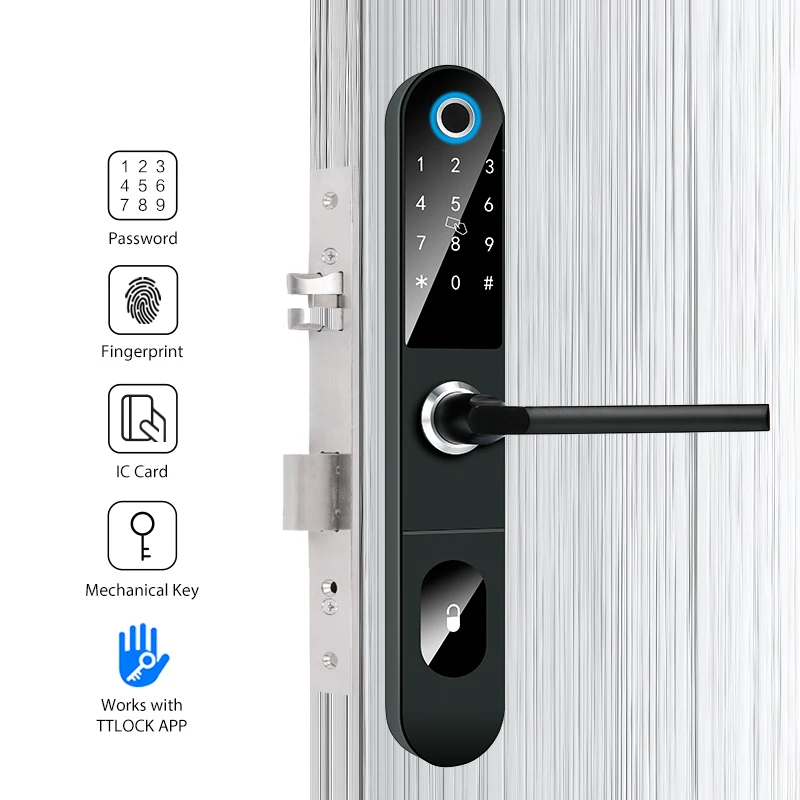 La serrure de porte intelligente se présente comme la solution idéale pour allier la simplicité d'un accès sans clé à une sécurité renforcée. Nous avons mis ce modèle au banc d'essai pour déterminer s'il tient véritablement sa promesse de vous apporter une totale tranquillité d'esprit En cas d'épuisement de la batterie, il suffit de connecter une batterie de secours ou d'utiliser la clé mécanique via l'interface USB Type-C située au bas du panneau avant. Avec son design polyvalent, il est compatible avec différents types de portes avec une épaisseur allant de 38 mm à 55 mm. En cas d'urgence, les clés mécaniques et l'application administrateur peuvent toujours être utilisées pour le déverrouillage. Wifi serrure de porte électrique serrure numérique Bluetooth TTLock... Poids du panneau avant : 481 g. Température de fonctionnement : -20 °C à 70 °C. Méthodes de déverrouillage : empreintes digitales, application, carte, mot de passe, clé mécanique. Capacité utilisateur : 50 utilisateurs de mots de passe, 50 utilisateurs de cartes, 50 utilisateurs d'empreintes digitales Dimensions du produit : 24,8 x 14 x 7 cm. Prise en charge multilingue et compatibilité : notre serrure de porte intelligente à empreintes digitales prend en charge 10 langues, ce qui le rend adapté aux utilisateurs de différents pays. Contrôle pratique de l'application : notre serrure intelligente Tuya est équipée d'une application mobile conviviale qui offre une large gamme de fonctionnalités. Une fois activé, les empreintes digitales, les cartes et les mots de passe des membres réguliers deviendront invalides, assurant que seules les clés mécaniques et l'application/empreinte digitale/carte/mot de passe de l'administrateur peuvent être utilisées pour le déverrouillage. 1 boîtier de verrouillage avec plaque de boucle., 1 lot de vis., 2 clés., 2 cartes. Serrure Porte Connectée Wifi Atériel Futé D'alliage D'aluiniu De Serrure De Porte De Clavier Nuérique D'epreinte Digitale Serrures Intelligentes Lorsque le niveau de la batterie est faible, le verrou vous avertira par le biais d'invites vocales. Mécanismes de sécurité améliorés : notre serrure de porte intelligente dispose de plusieurs mécanismes de sécurité pour garantir la plus grande sécurité pour votre maison. Humidité de fonctionnement : 20 % ~ 80 % HR. Il est crucial de remplacer la batterie dès que possible après le déverrouillage. Ruveno Serrure de porte intelligente résistante aux intempéries avec poignée Interface d'alimentation d'urgence : USB Type-C DC 5 V/1 A. Alerte de batterie et alimentation d'urgence : ne vous inquiétez pas de manquer de batterie avec notre verrouillage intelligent.