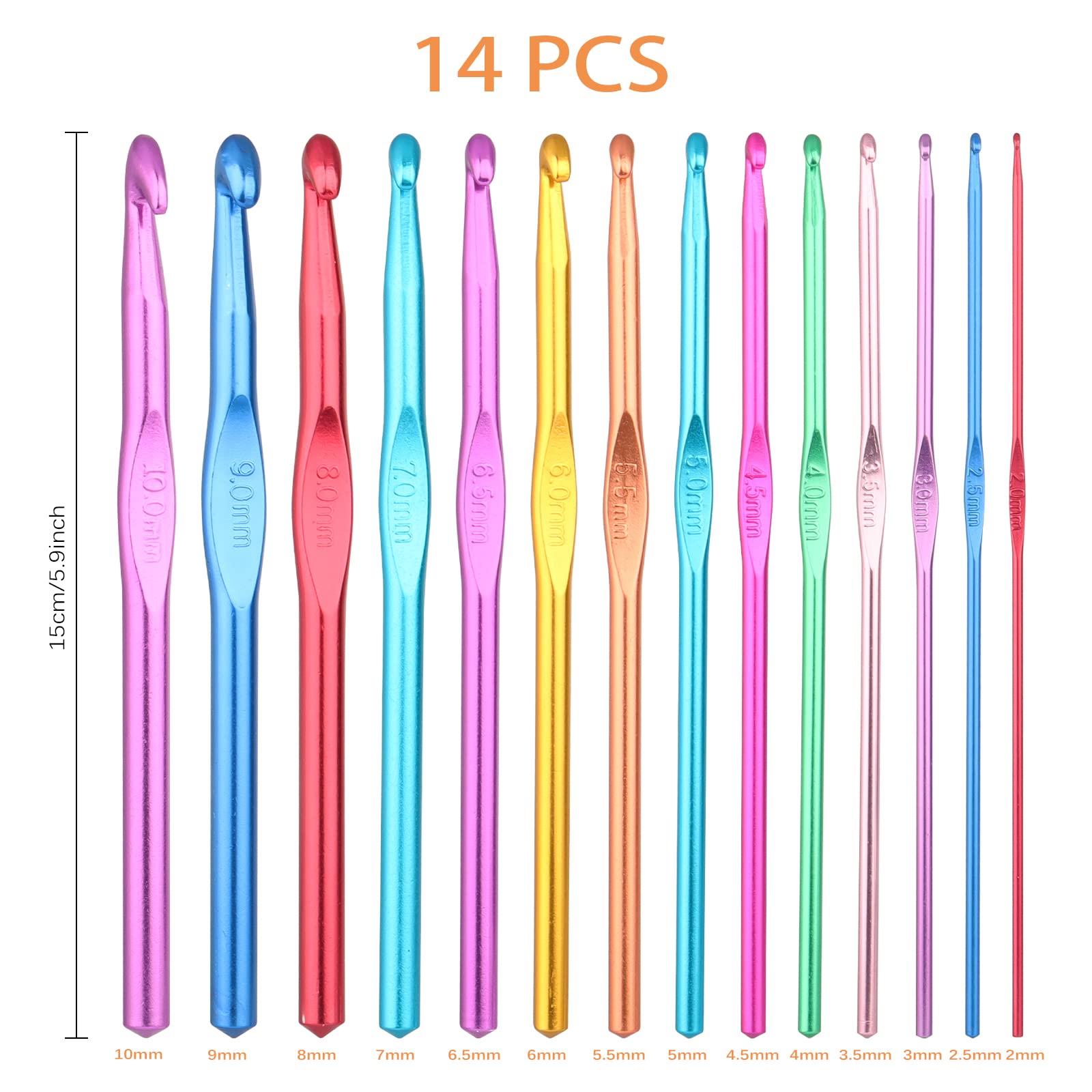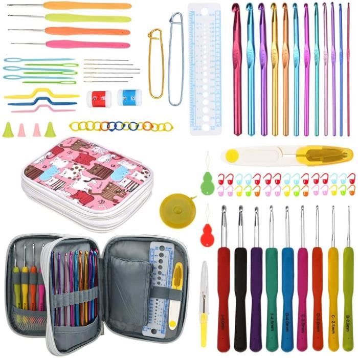 Kit de crochet pour fil Lot de 8 crochets en aluminium avec poignée en... [Manches en Caoutchouc Souple]: Set crochet tricot, ensemble de crochets avec poignées en caoutchouc, les aiguilles crochets de notre set possèdent des manches en caoutchouc ergonomiques pour plus de confort. [Identifiez Facilement les Crochets]: Les ensemble de 10pcs aiguilles à tricoter, crochets ergonomiques est gravée avec une taille permanente, crochet tricot en fer, différentes couleurs correspondent à différentes tailles de crochet, pour une identification facile de la taille et choisissez la bonne taille sans aucun effort, très pratique Lot de 10 crochets à tricoter en métal avec poignée en Kit Tricot Debutant Crochets Multicolores Avec Poignée En Caoutchouc, Aiguilles à Kit Crochetage Debutant Se glisse facilement dans votre sac à dos, bagage, valise. Ce kits de crochet pour dentelles sera le cadeau parfait pour votre grand mère, mère, mère, tante, sœur, fille et vos amis [Cadeau Idéal pour le Crochet et le Tricot]: Ces crochets ergonomiques sont parfaits pour les tricoteurs et les amateurs de crochet de toutes compétences. Idéal pour les petits projets de crochet et pour passer du fil à travers les perles. [Facile à Transporter]: Crochet en fer tricot petite taille et poids léger, ensemble de crochets à tricoter, facile à transporter partout. Ensemble de crochets multicolores, kit de crochets pour débutants, ensemble de crochets de 14 tailles, crochets ergonomiques de 2 mm à 10 mm avec étui ; 1,00... Ces ensemble d'aiguilles à tricoter, crochets légers sont confortables à manipuler et ne glissent pas